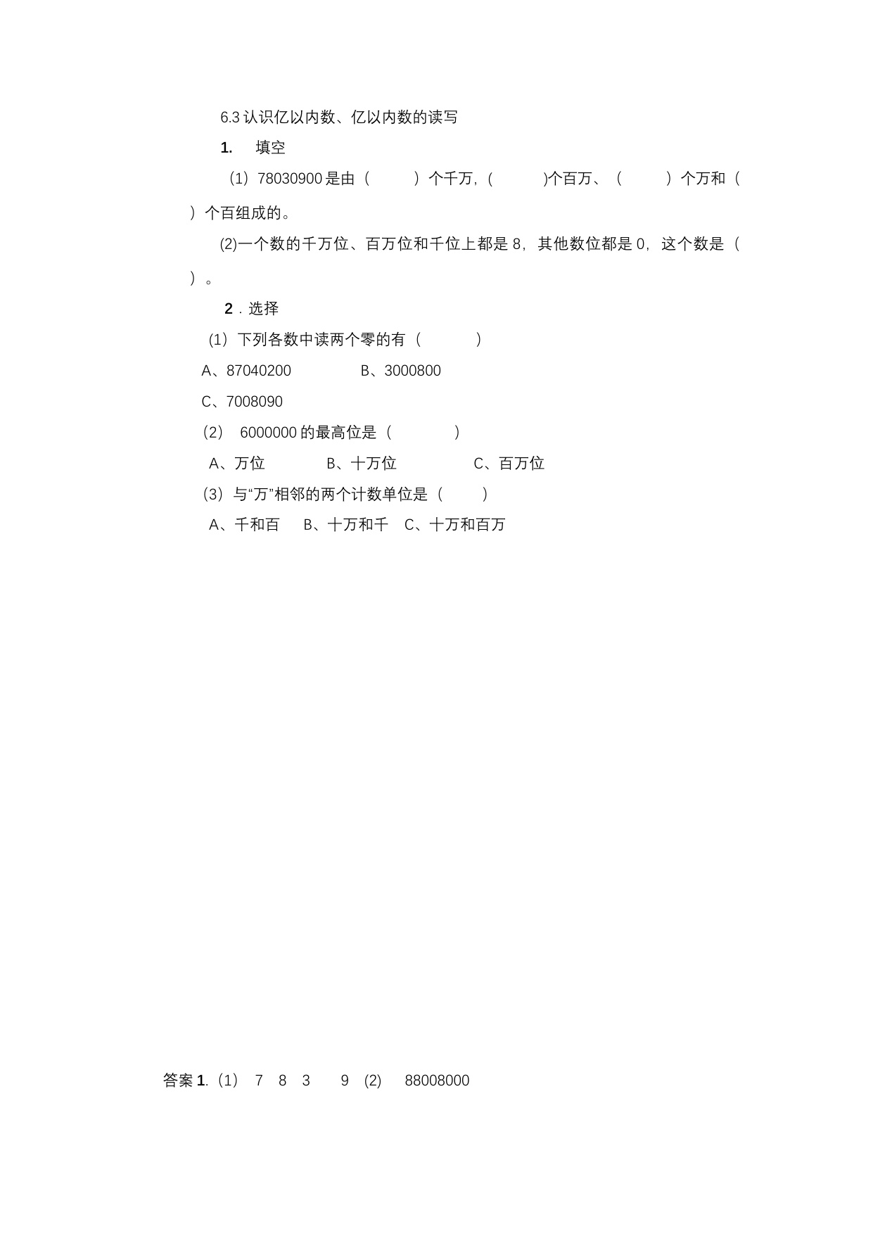 下一篇:冀教版数学四上课时练6-4 把整万数改写成以“万”为单位的数、体验一百万