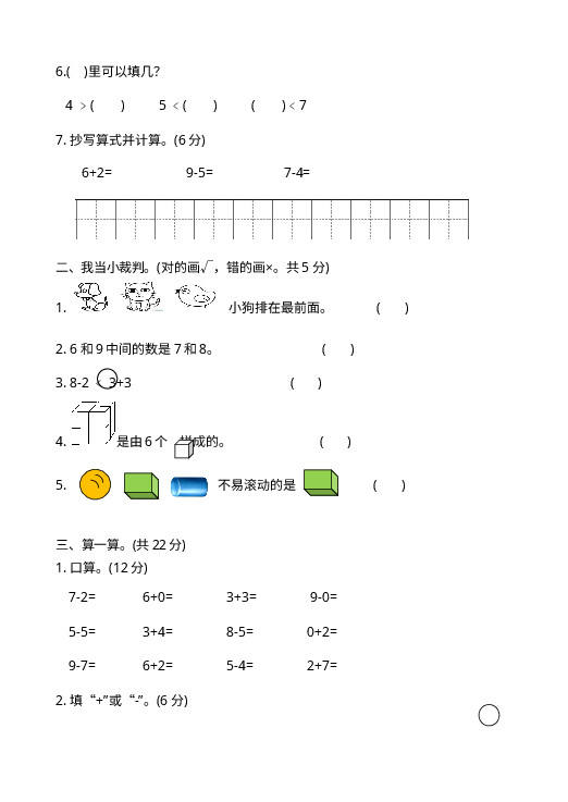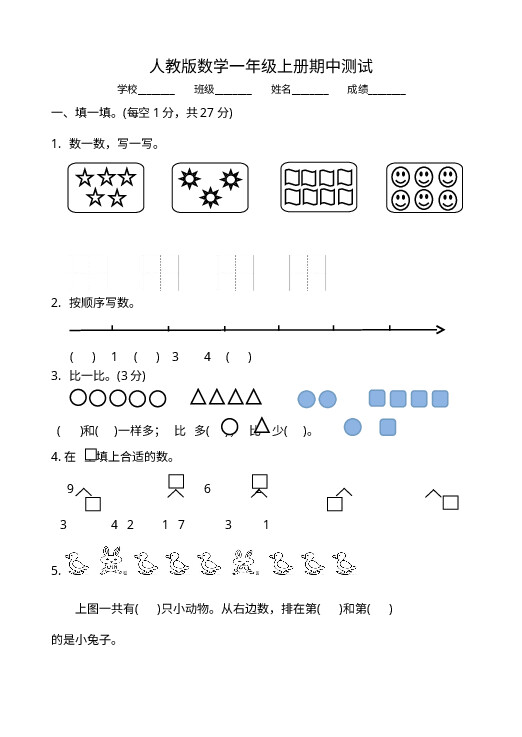 下一篇:人教版一年级数学上册-数学期中期中题卷(一)