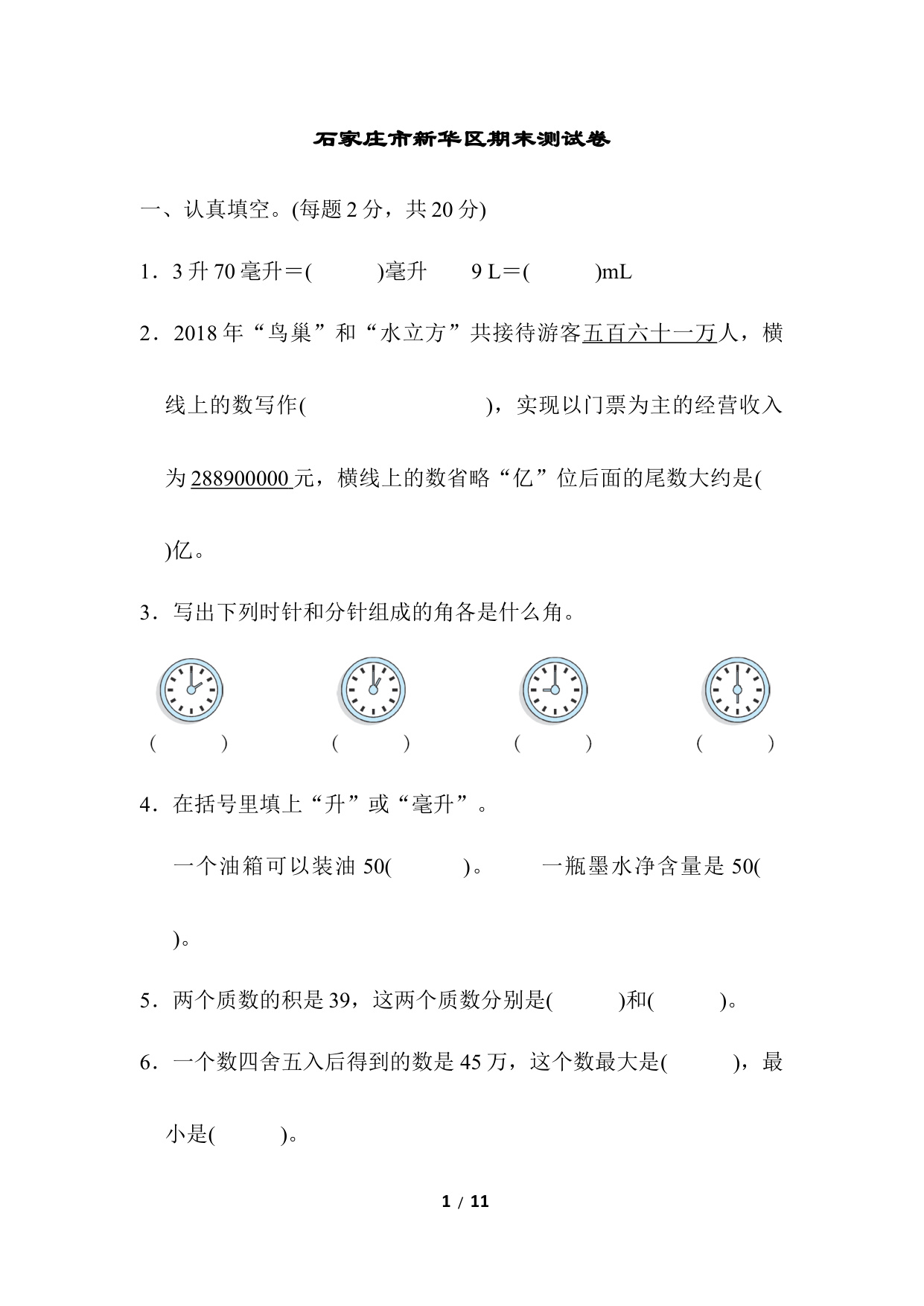 下一篇:石家庄市长安区、高新区期末测试卷