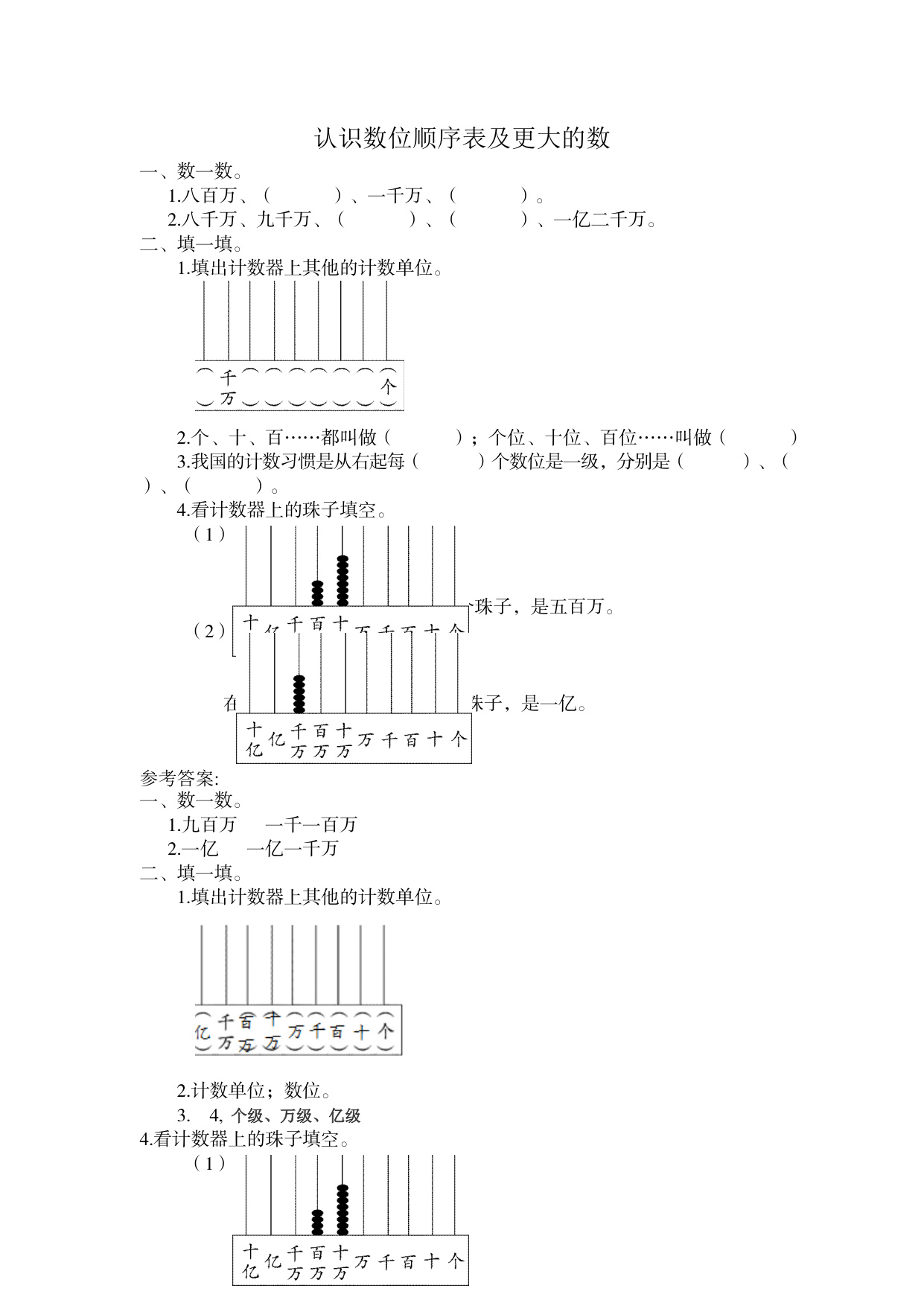 北师大版数学四上课时练1-2 认识数位顺序表及更大的数 资料为Word格式,请下载后使用相应软件打开。
