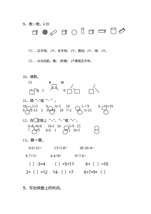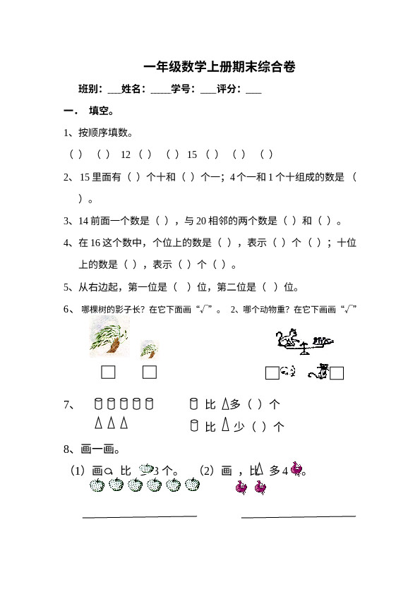 下一篇:人教版一年级数学上册-期中期中题卷(五)