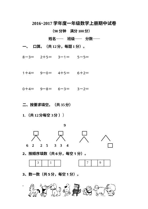 下一篇:人教版一年级数学上册期中测试卷及参考答案 (2)
