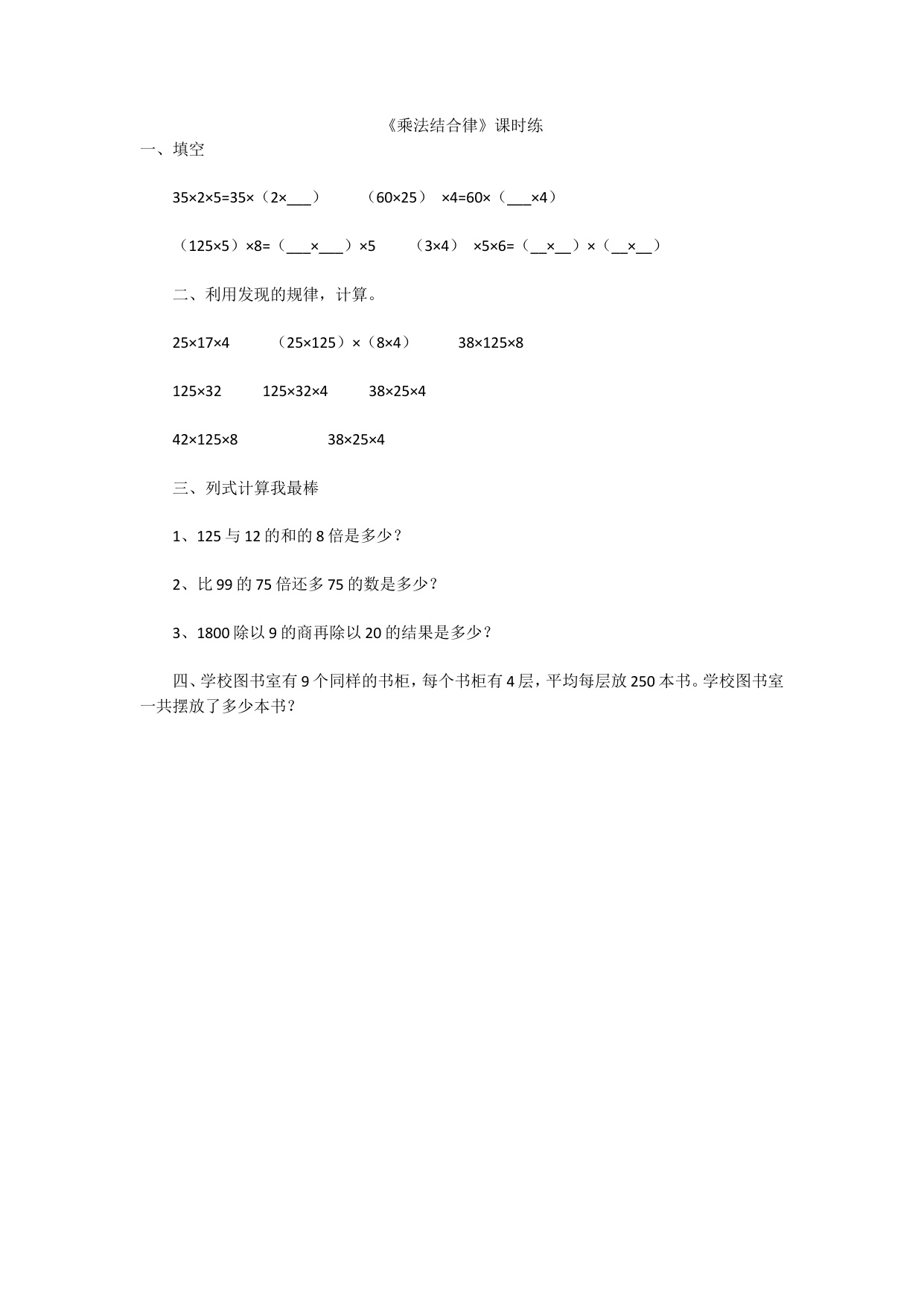 下一篇:北师大版数学四上课时练4-5 乘法结合律