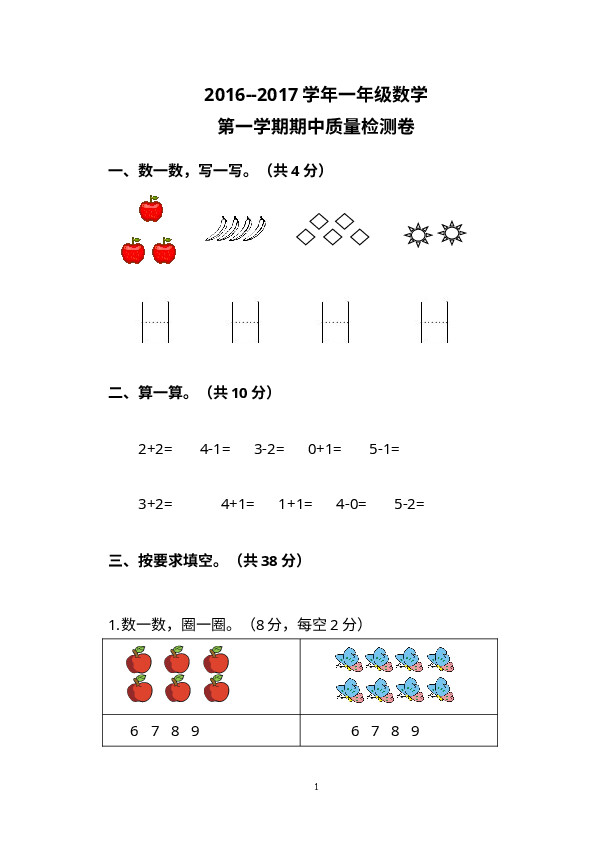 下一篇:人教版一年级数学上册期中测试卷及参考答案 (3)