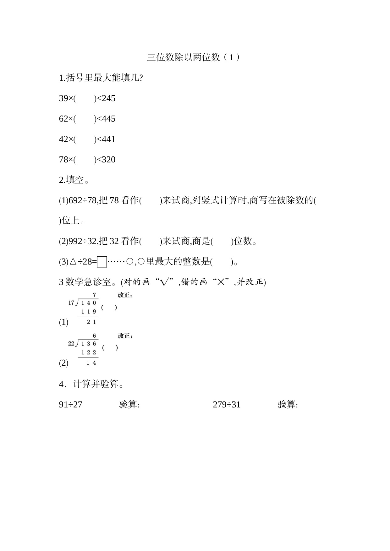 北师大版数学四上课时练6-3 三位数除以两位数(1) 资料为Word格式,请下载后使用相应软件打开。