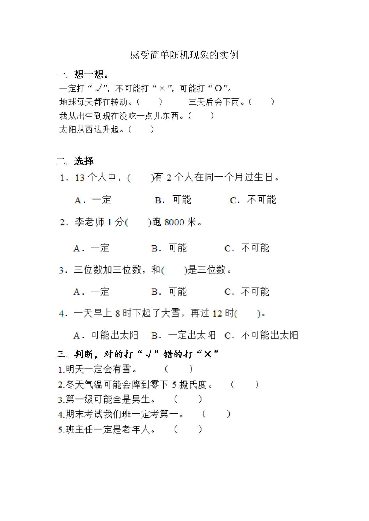 北师大版数学四上课时练8-1 感受简单随机现象的实例 资料为Word格式,请下载后使用相应软件打开。