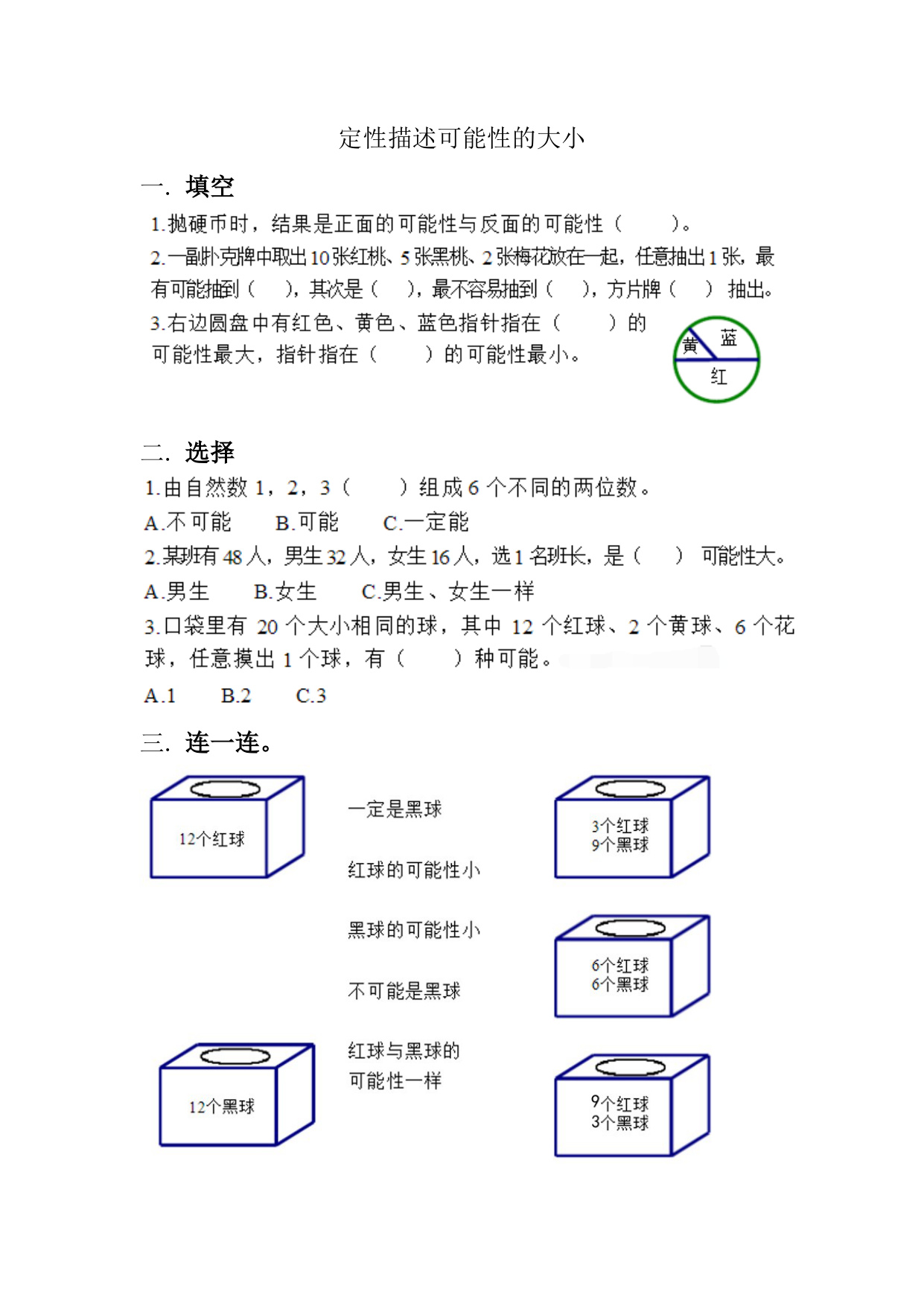 北师大版数学四上课时练8-2 定性描述可能性的大小 资料为Word格式,请下载后使用相应软件打开。