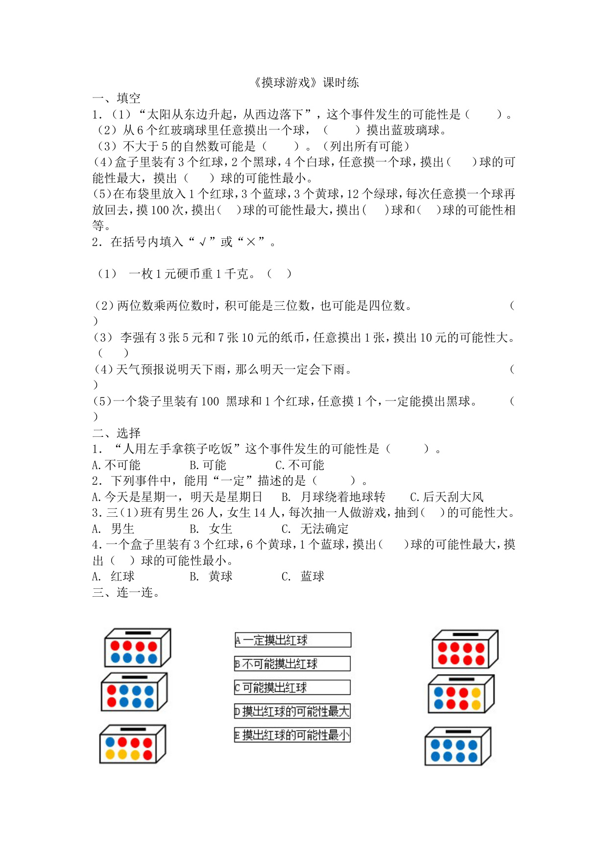 上一篇:北师大版数学四上课时练8-2 定性描述可能性的大小