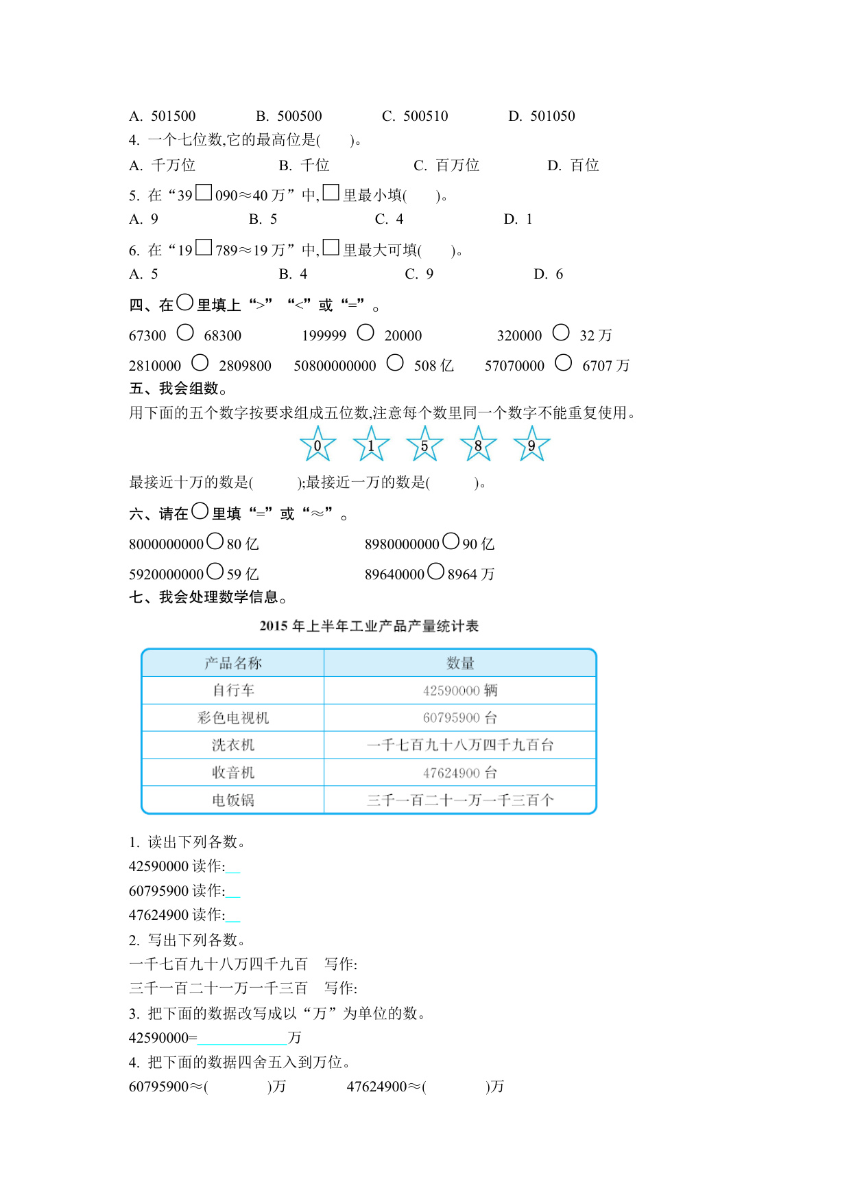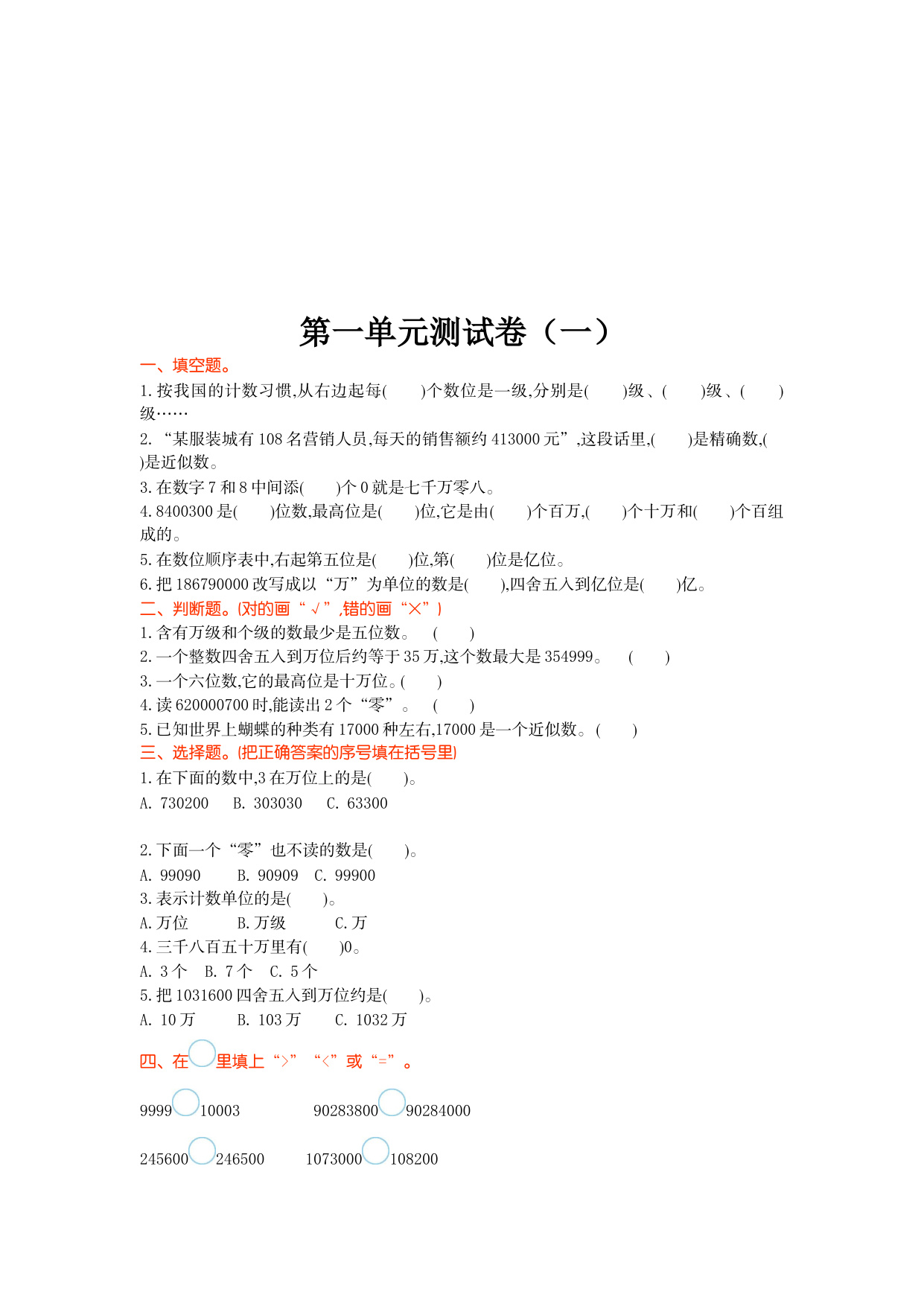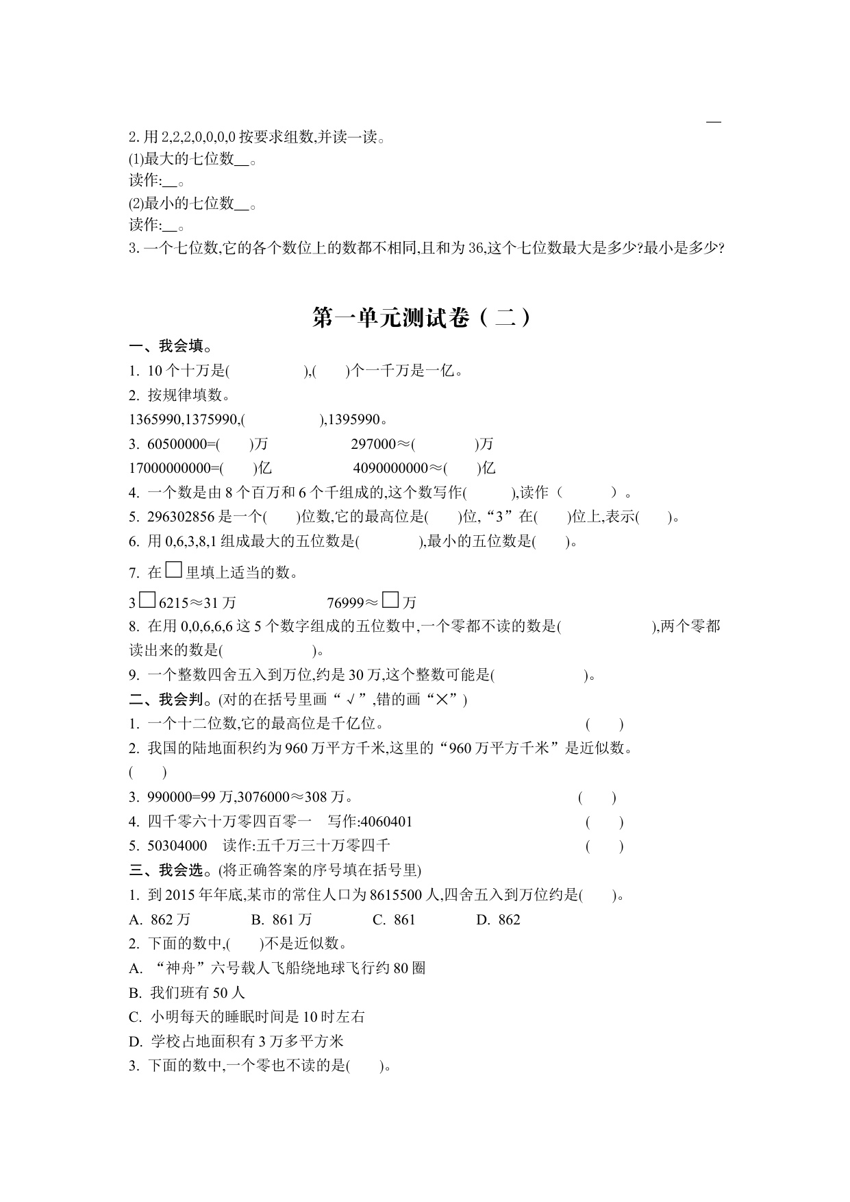 下一篇:北师大版四年级数学上册第1单元测试卷含答案