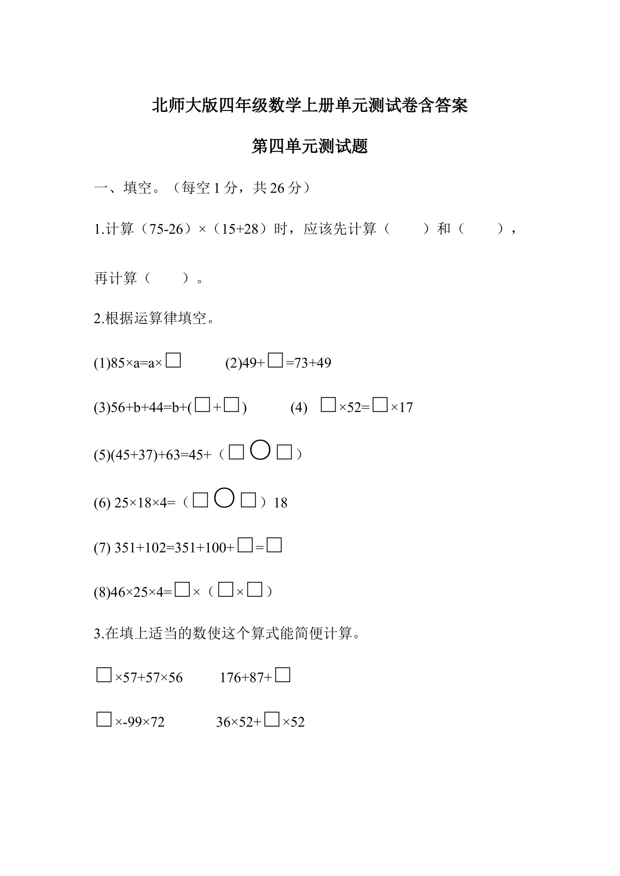 上一篇:北师大版四年级数学上册第4单元测试卷含答案