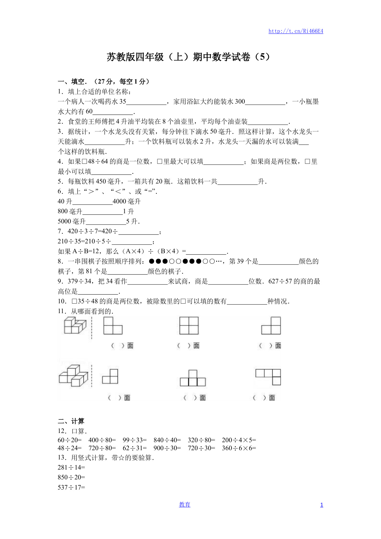 下一篇:苏教版数学四年级上学期期中测试卷3