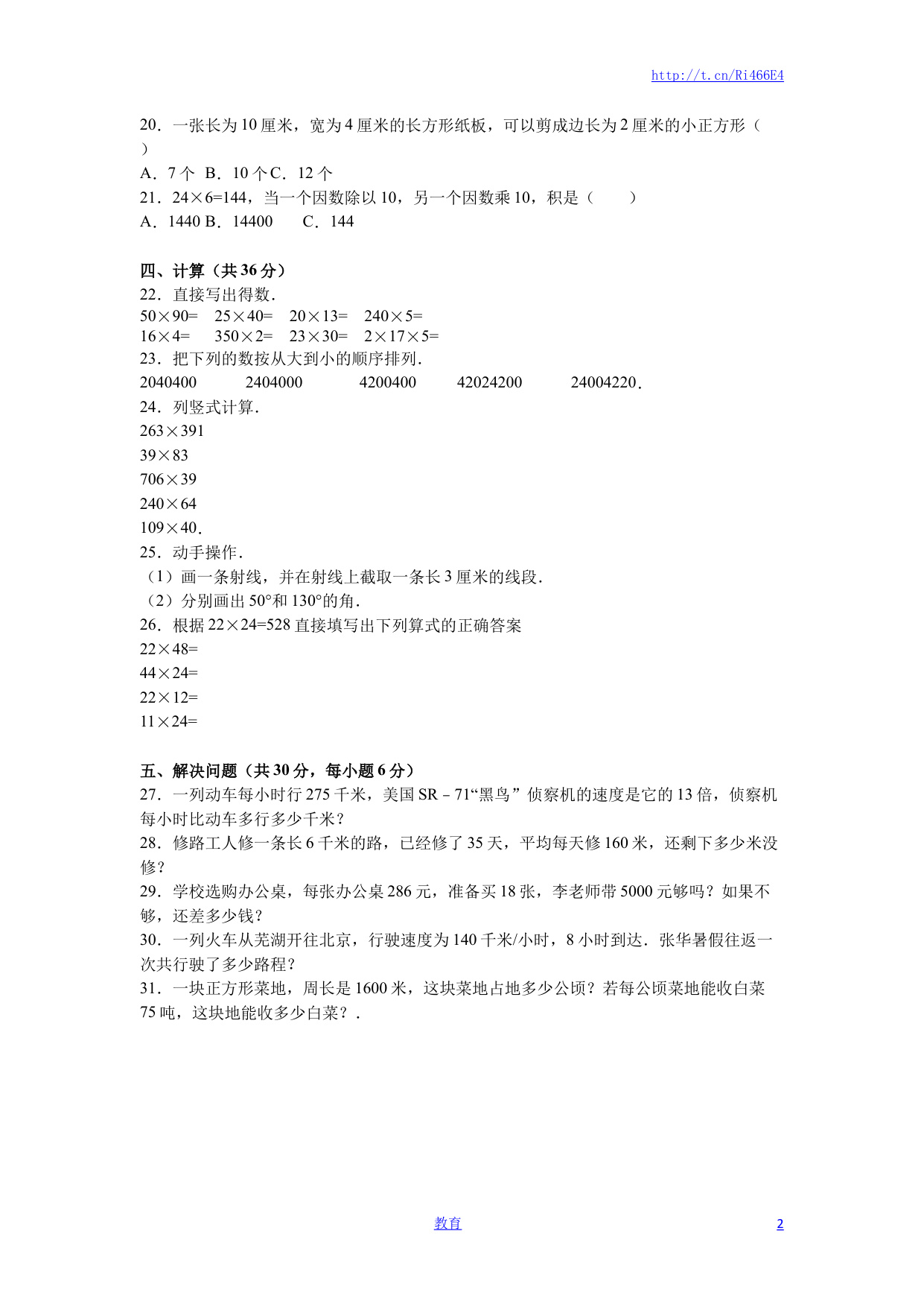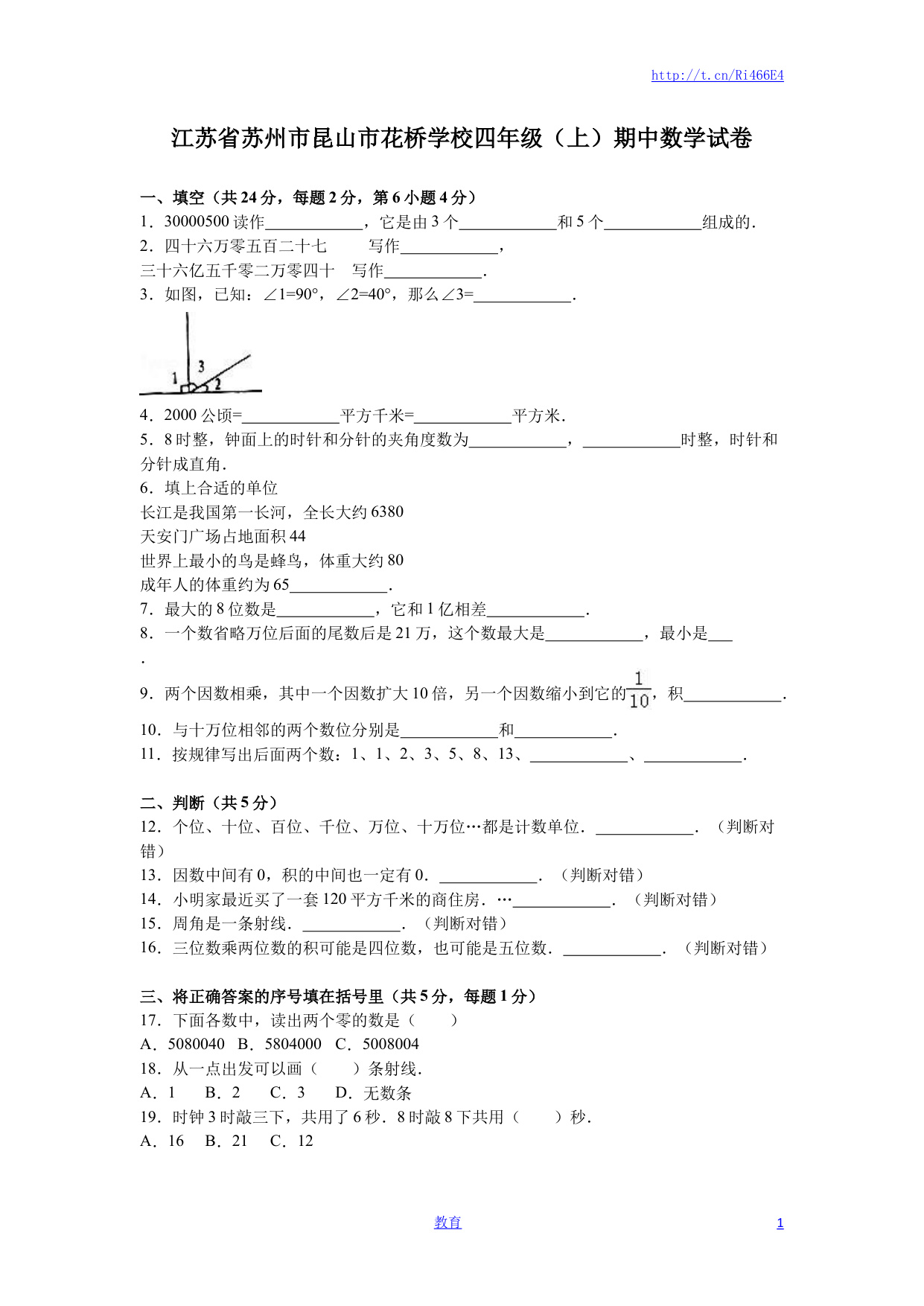 下一篇:苏教版小学四年级上册数学期末测试题及答案