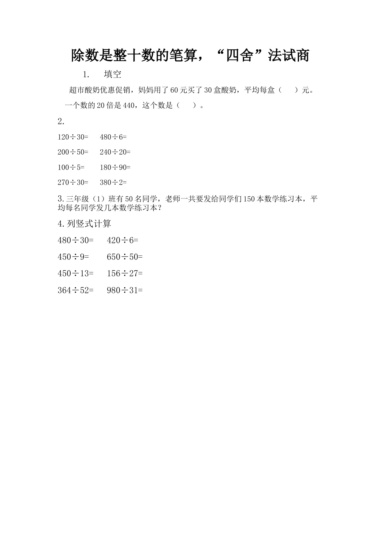 青岛版数学四上5-2 除数是整十数的笔算,“四舍”法试商 资料为Word格式,请下载后使用相应软件打开。