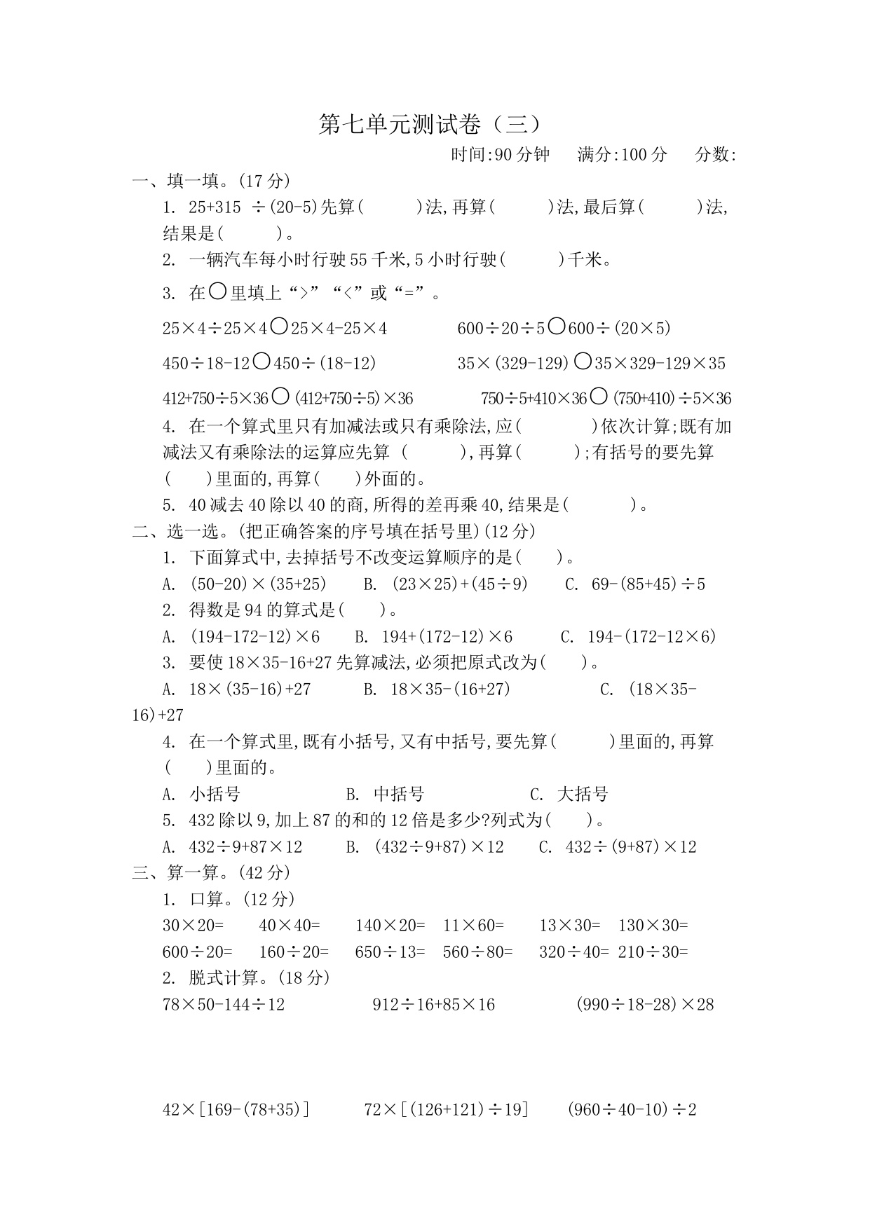 下一篇:青岛版数学四上第七单元测试卷(二)