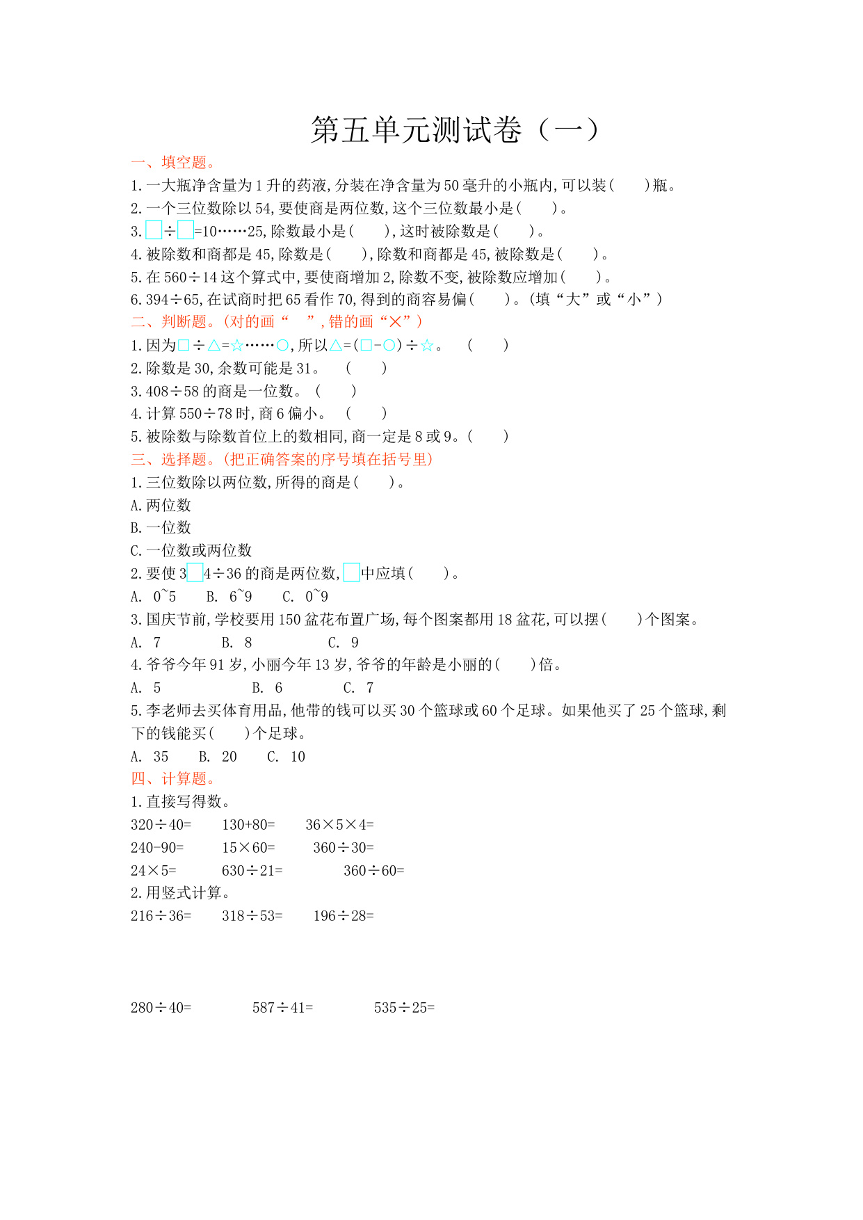 下一篇:青岛版数学四上第五单元测试卷(三)