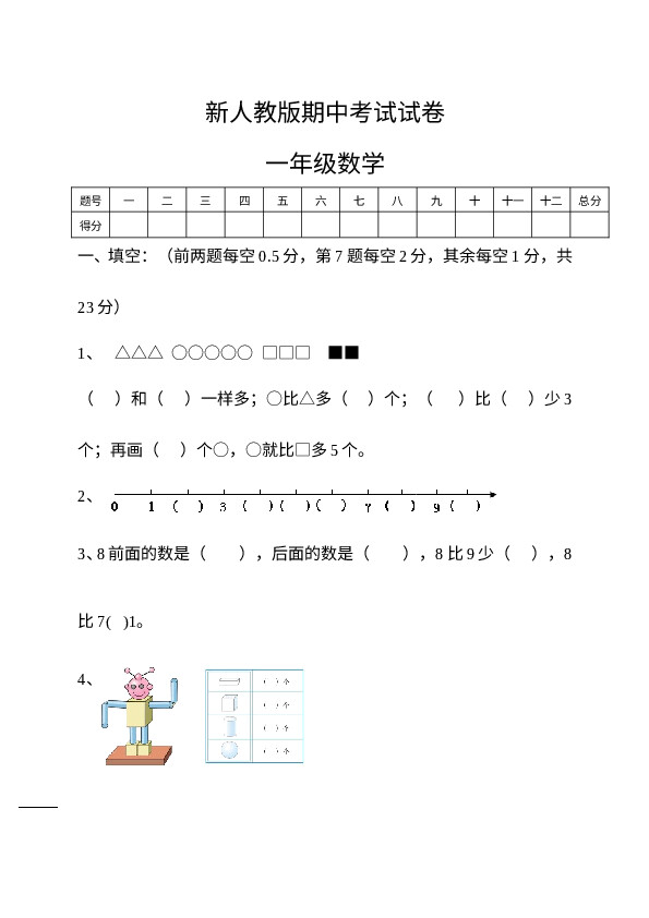 下一篇:新人教版小学一年级数学上册期中试卷6