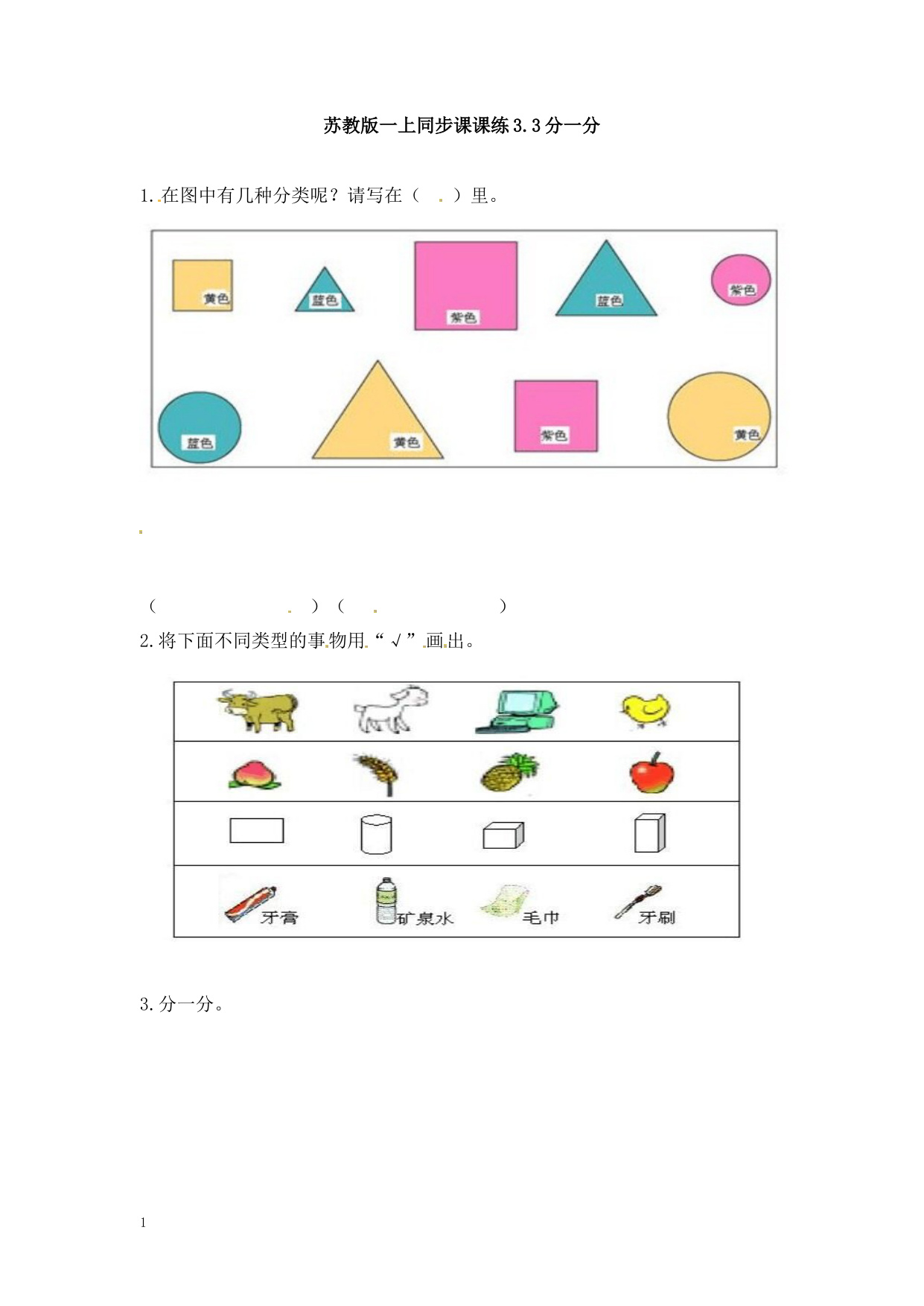 下一篇:一年级上册数学-第三单元分一分课时:4(苏教版)一课一练