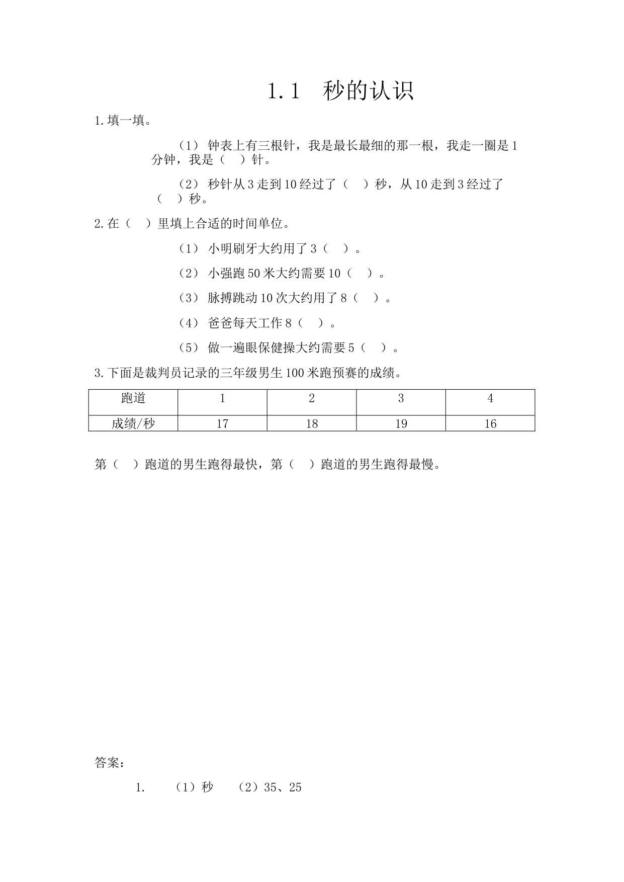 下一篇:人教版数学三年级课时练1-1 秒的认识2