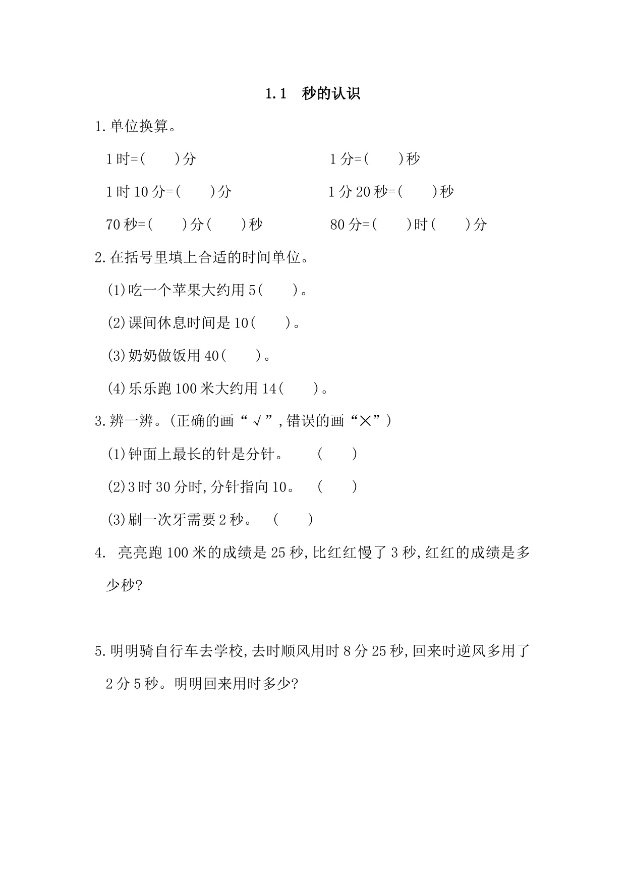 上一篇:人教版数学三年级课时练1-1 秒的认识