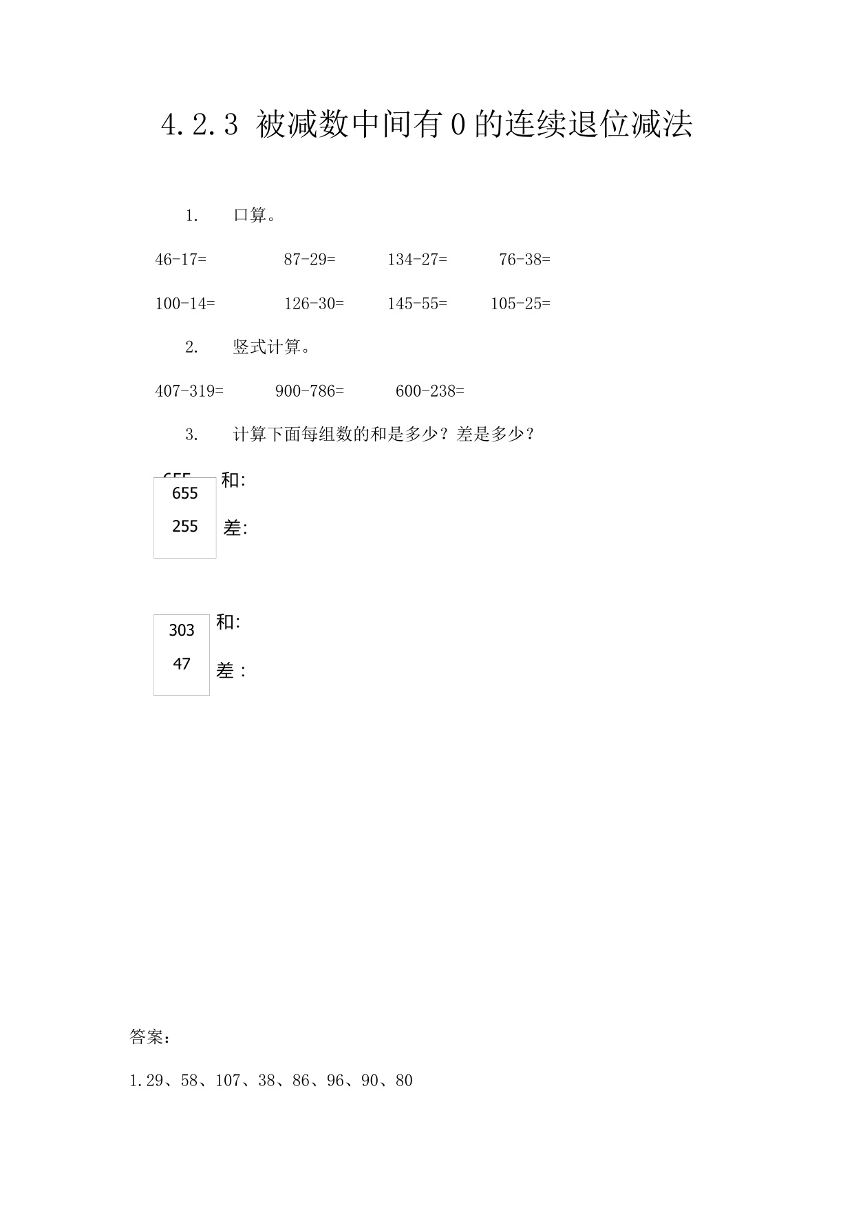 上一篇:人教版数学三年级课时练4-2-2 三位数减两位数(连续退位)