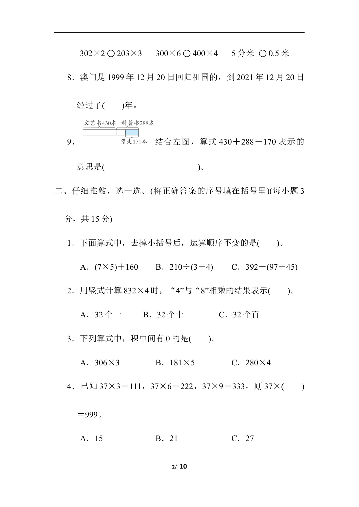 下一篇:小学三年级上册-北师大版数学第二单元测试A卷含答案