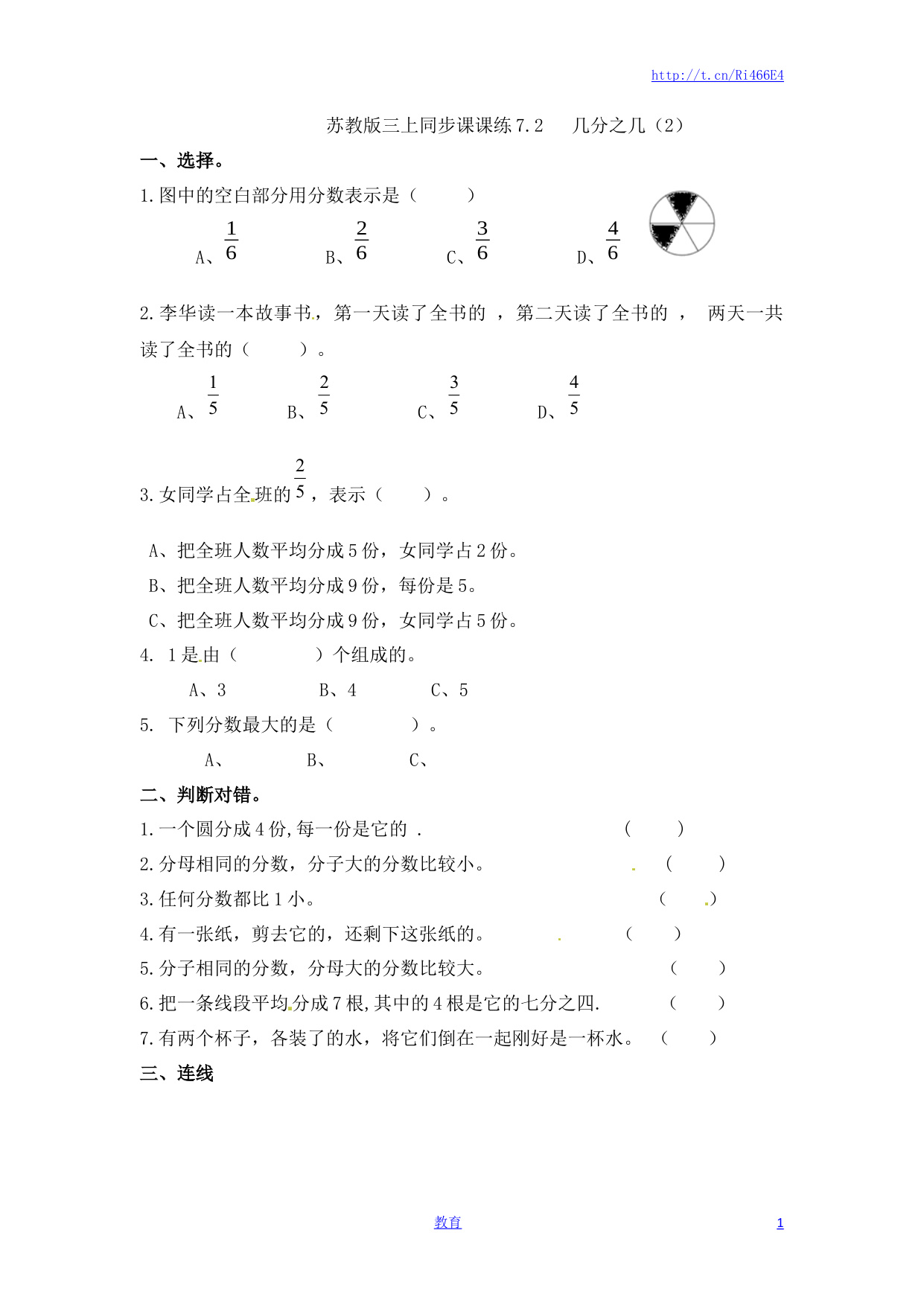 上一篇:三年级上册数学一课一练-7-2几分之几(1)-苏教版