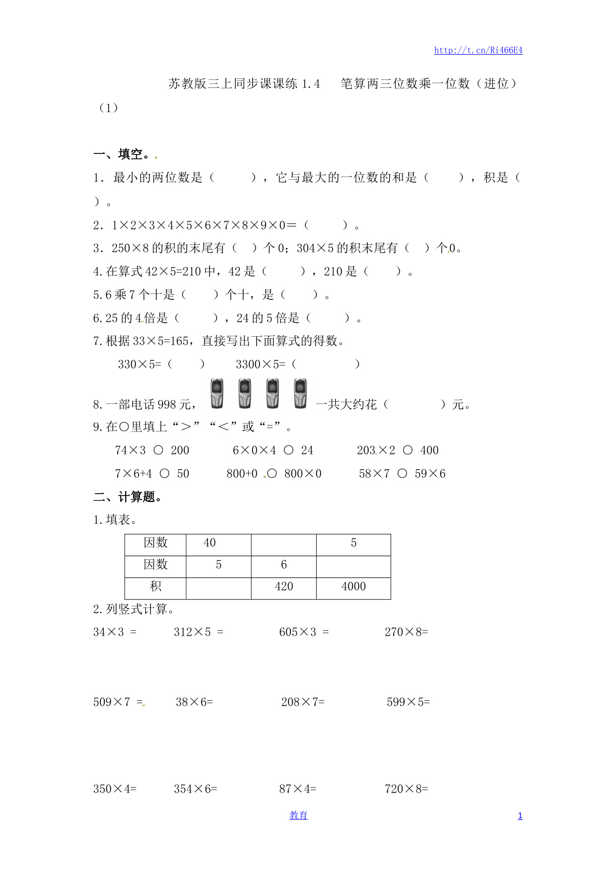 下一篇:三年级上册数学一课一练-加油站1-4 笔算两三位数乘一位数(进位)(2)-苏教版