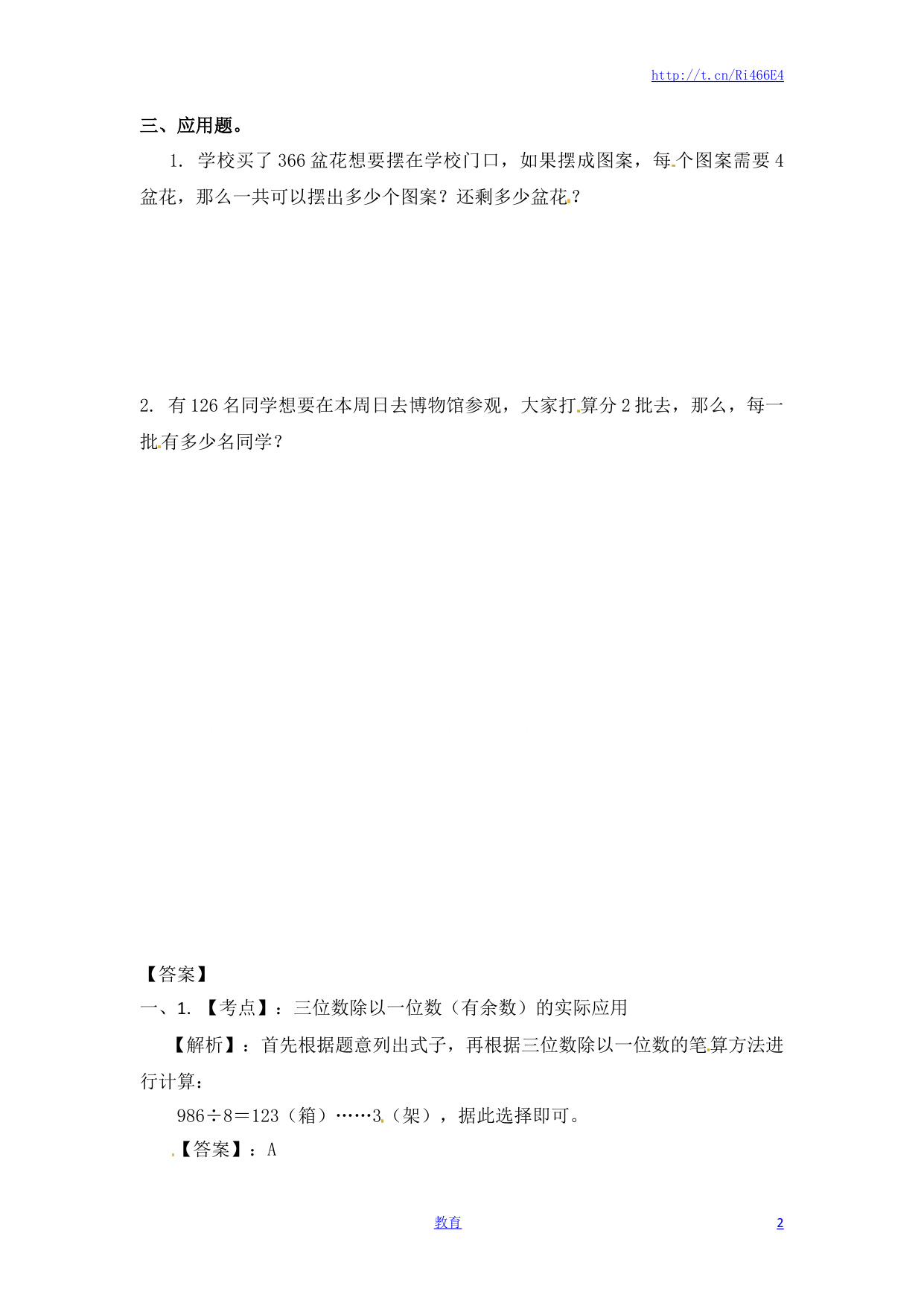 三年级上册数学一课一练-加油站4-3 两三位数除以一位数的笔算(有余数)-苏教版 资料为Word格式,请下载后使用相应软件打开。