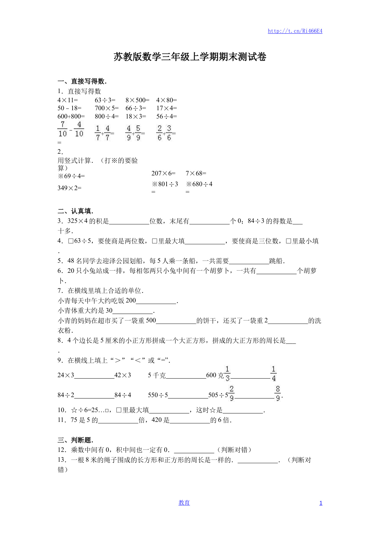 下一篇:苏教版数学三年级上学期期末测试卷5