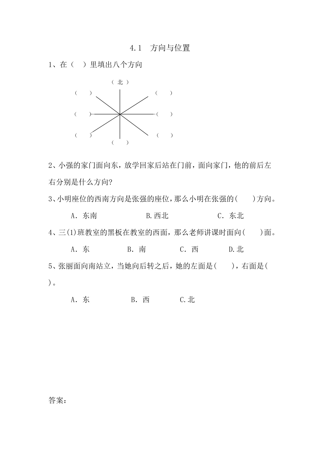 下一篇:青岛版三上数学课时练4-1 认识东北、西北、东南、西南