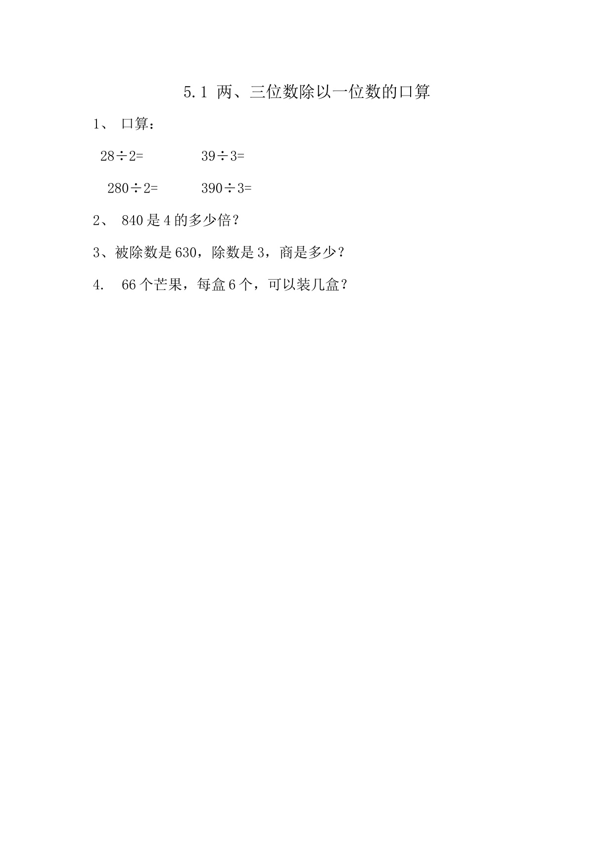 青岛版三上数学课时练5-1 两、三位数除以一位数的口算 资料为Word格式,请下载后使用相应软件打开。