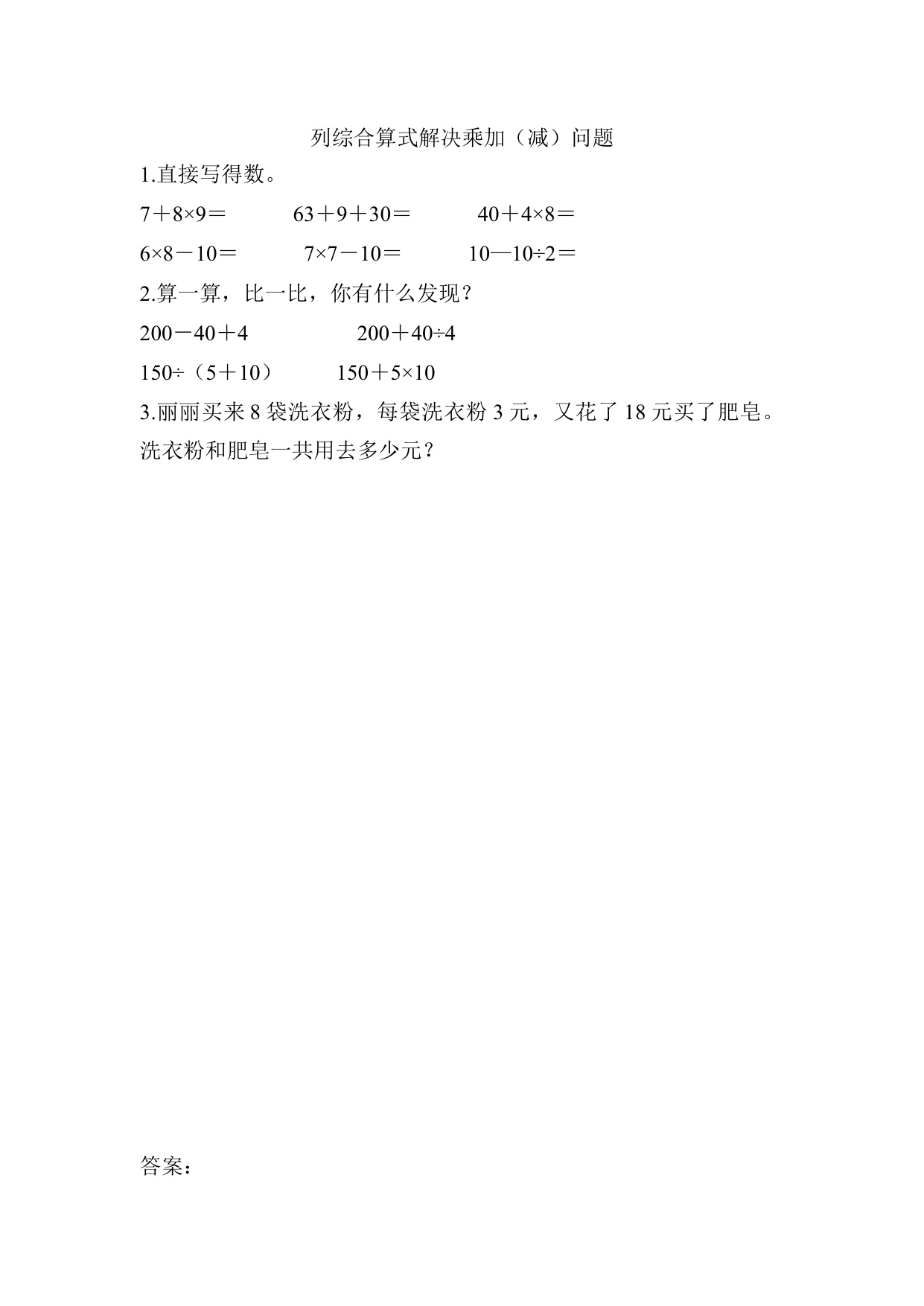 下一篇:青岛版三上数学课时练6-2 列综合算式解决除加(减)问题