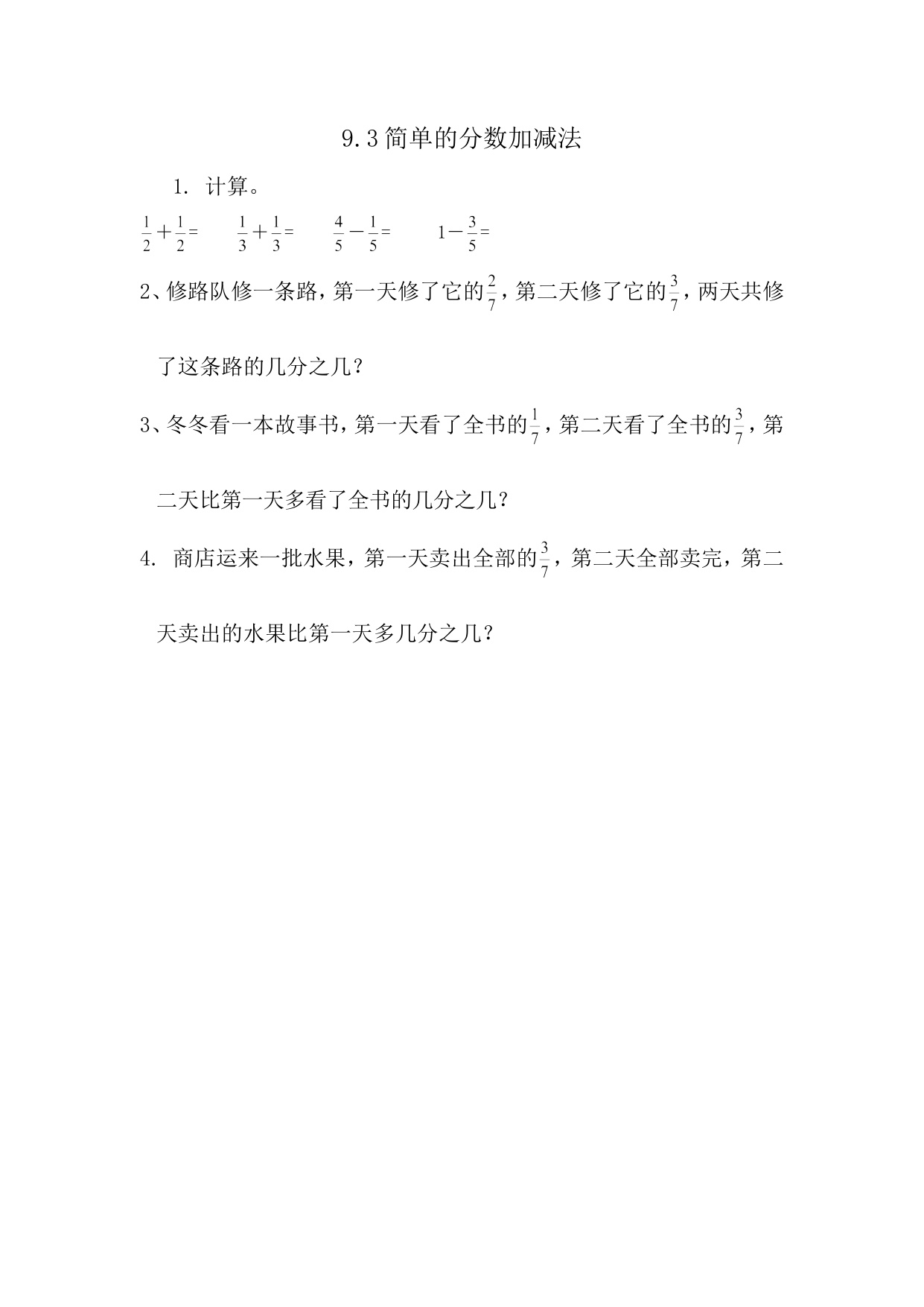 下一篇:青岛版三上数学课时练9-4 同分母分数加减法