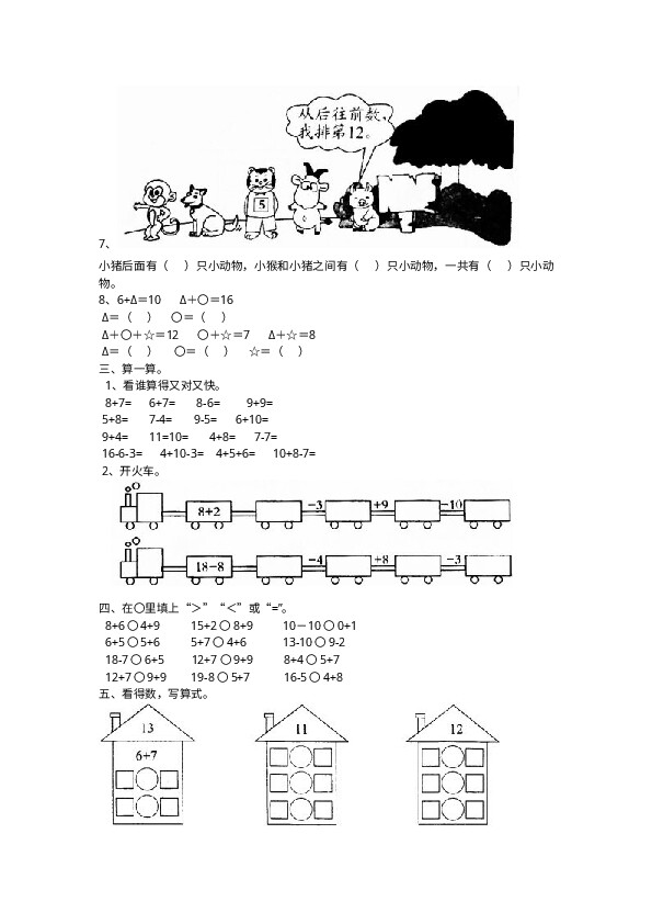 上一篇:青岛版一年级上册数学专项练习-20以内数的认识
