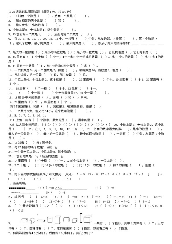 下一篇:青岛版一年级上册数学题型突破卷(1)