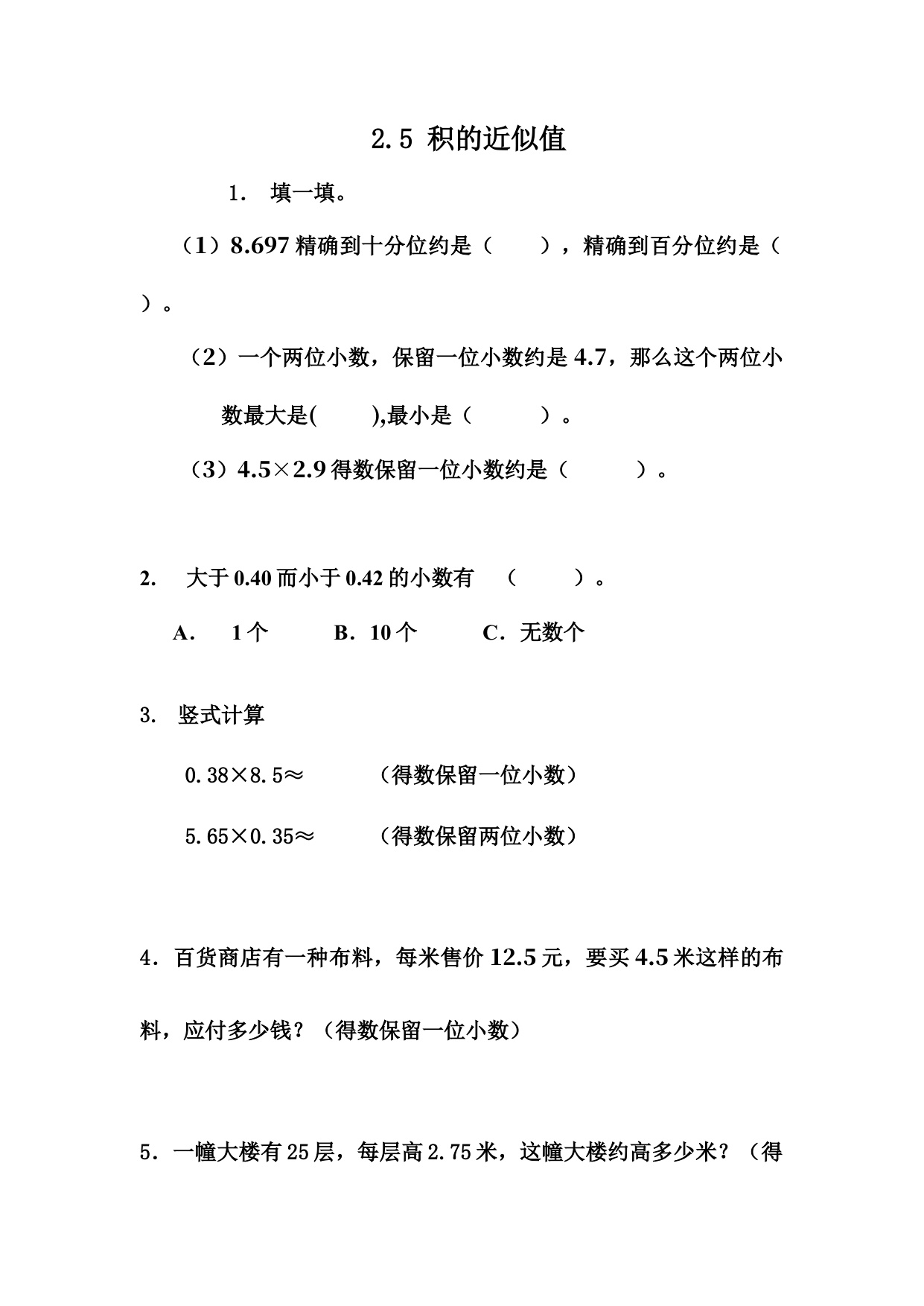 上一篇:五上数学课时练2-4 小数乘小数