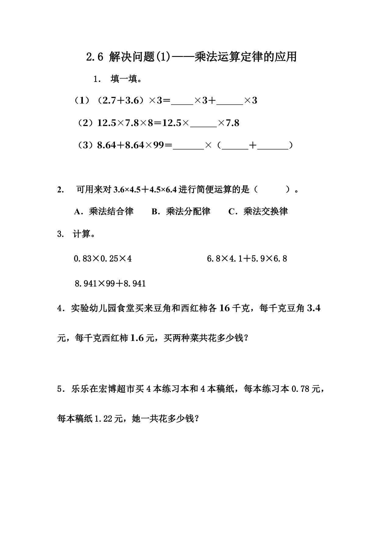 五上数学课时练2-6 解决问题(1)——乘法运算定律的应用