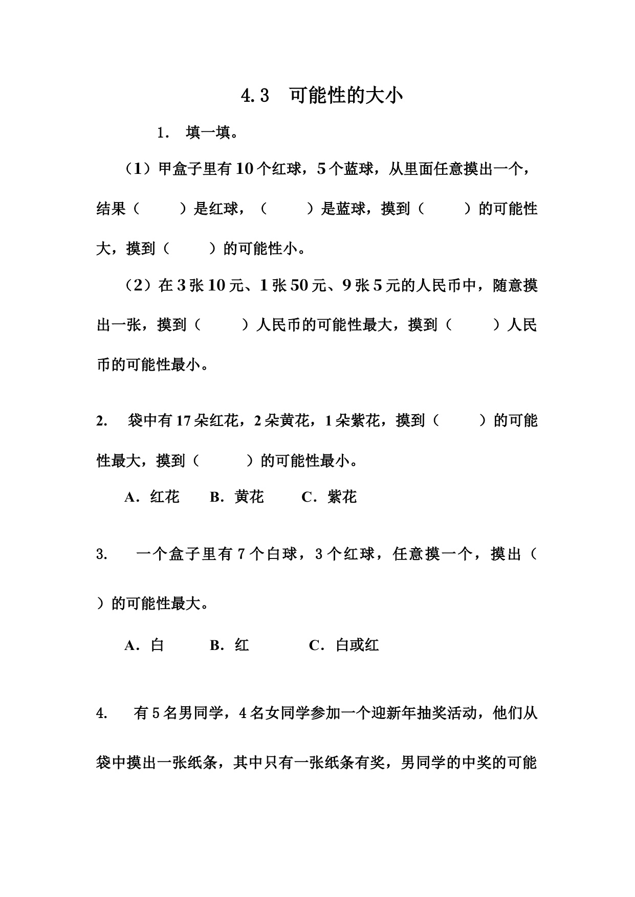 下一篇:五上数学课时练4-4 可能性的应用
