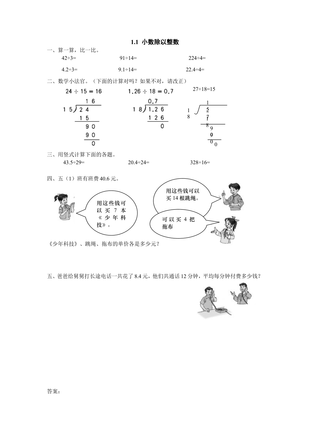 下一篇:北师版五上数学课时练1-1 除数是整数的小数除法
