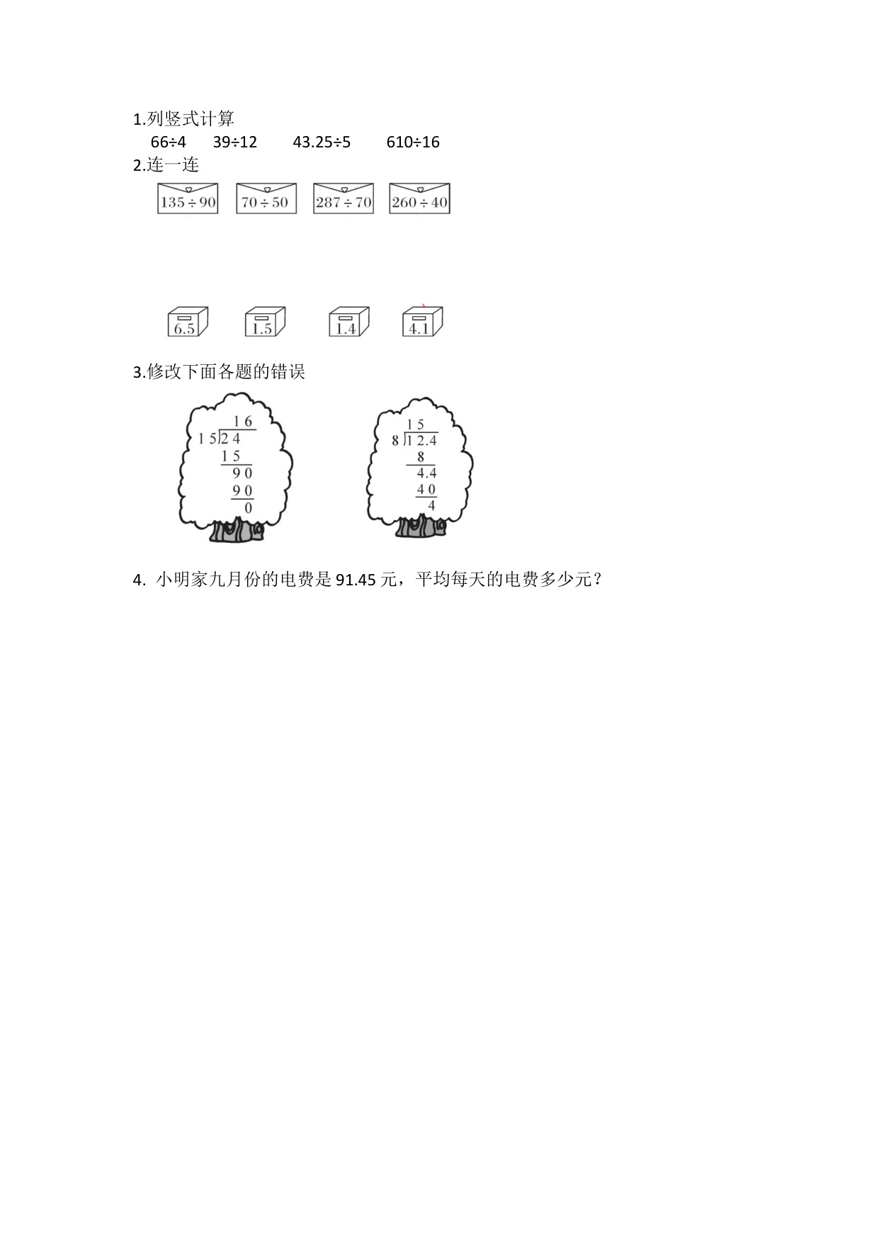 北师版五上数学课时练1-2 除数是整数、需要补0的小数除法(1)