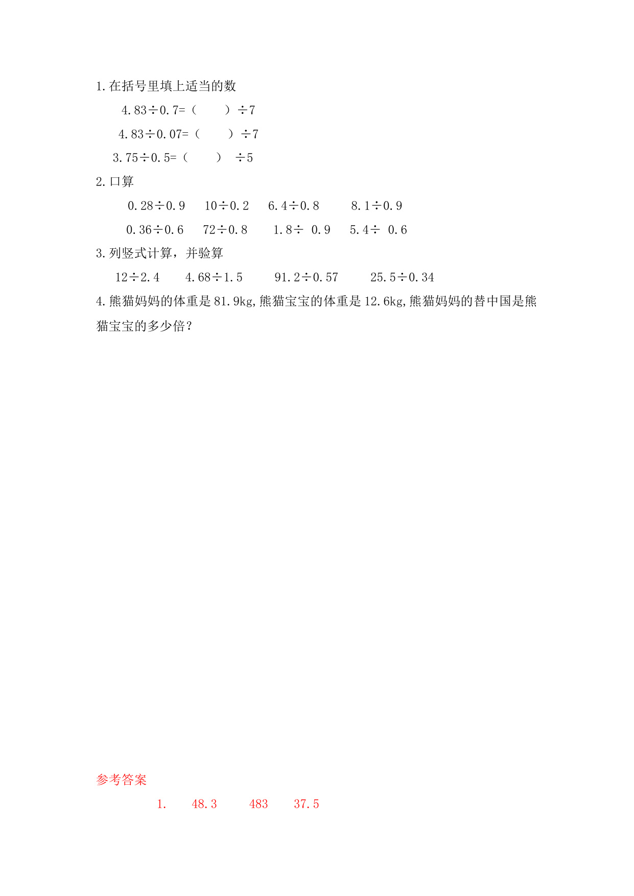 北师版五上数学课时练1-4 除数是小数的小数除法(1) 资料为Word格式,请下载后使用相应软件打开。