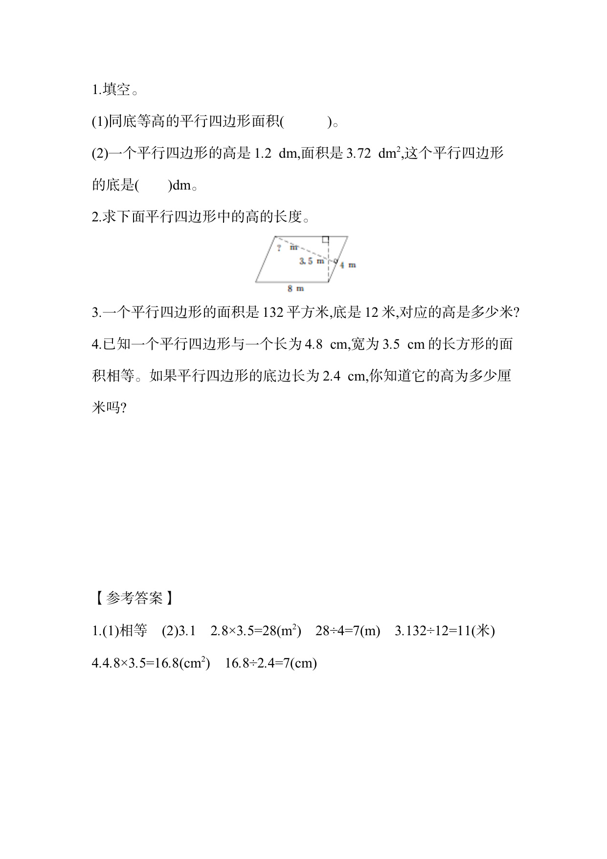 北师版五上数学课时练4-4 平行四边形的面积(2)
