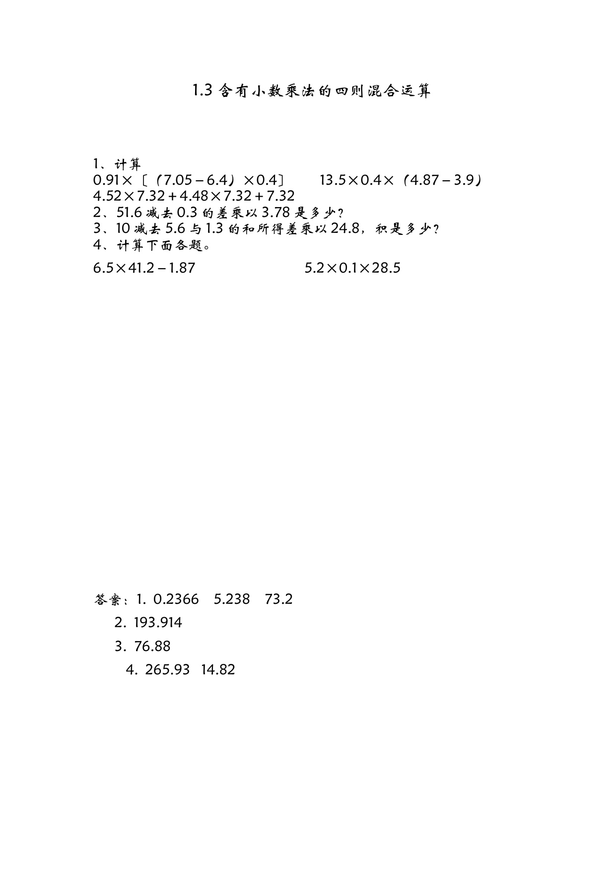 下一篇:青岛版五上数学1-3 小数连乘