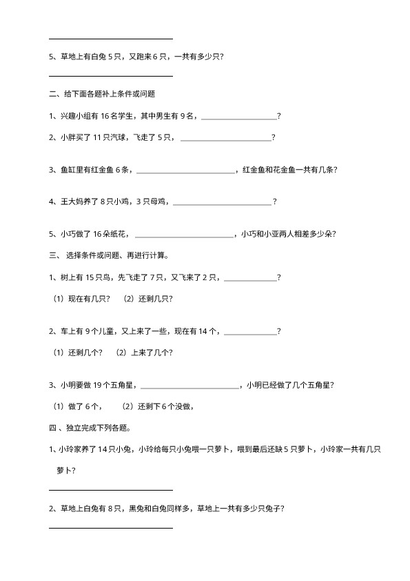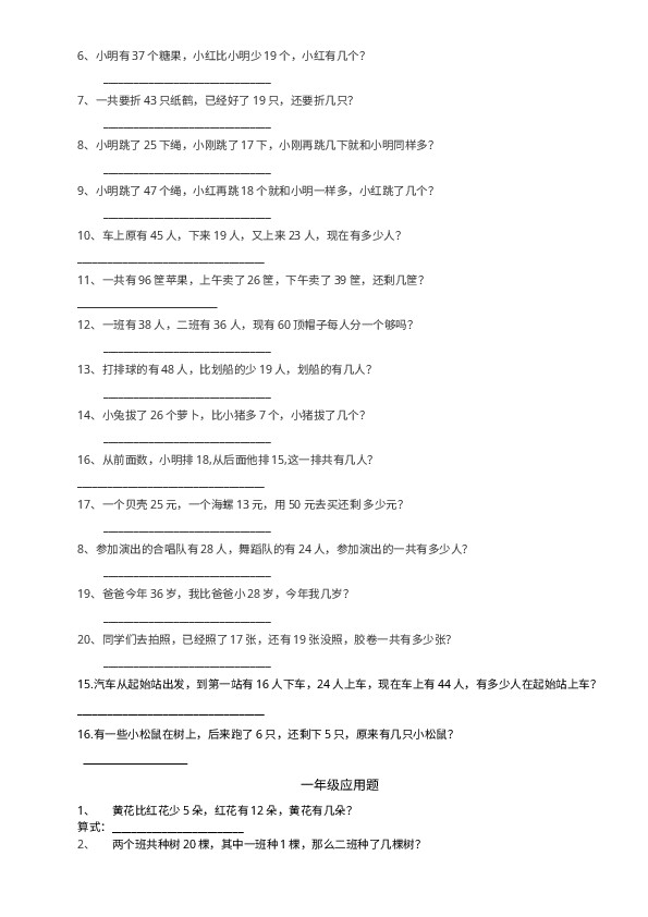 下一篇:小学一年级上册-数学专项练习题:11-20各数的认识复习题(1)