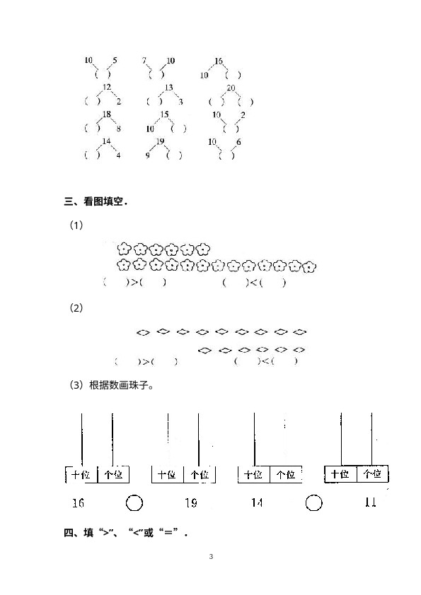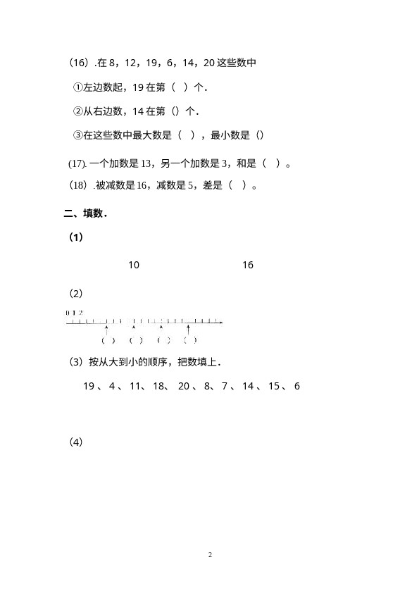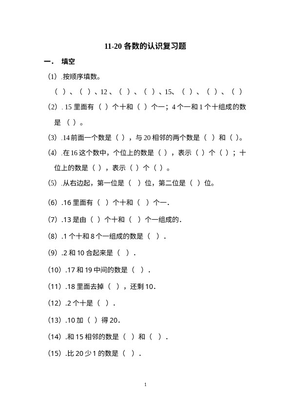 小学一年级上册-数学专项练习题:11-20各数的认识复习题(1)