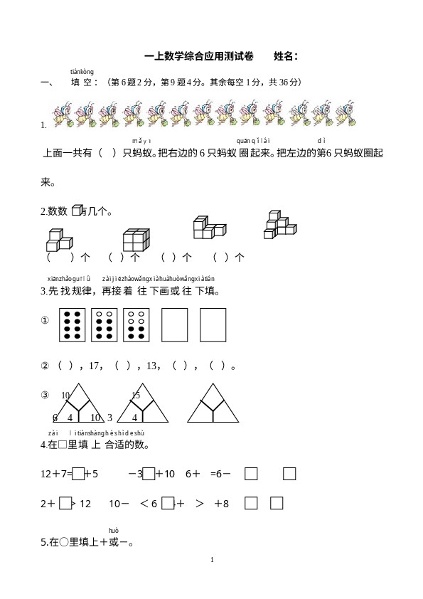 下一篇:小学一年级上册-数学专项练习:综合练习题精选
