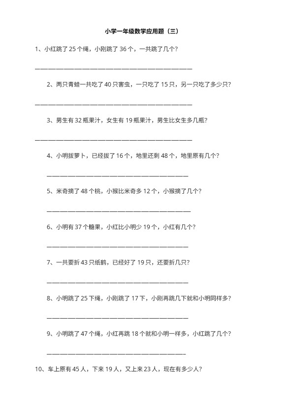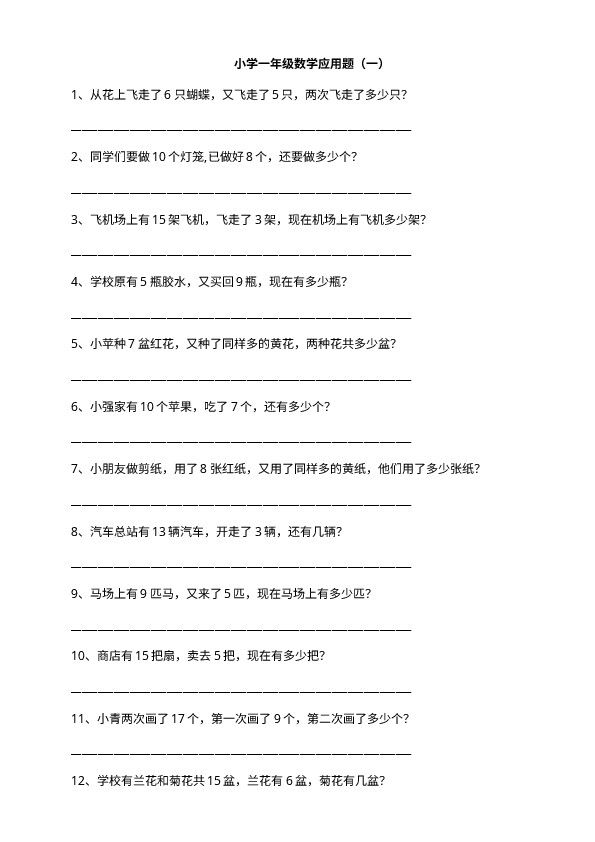 上一篇:小学一年级上册-数学应用题练习题-(1)