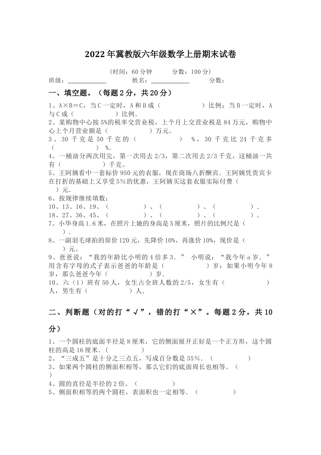 下一篇:【名校密卷】冀教版六年级(上)数学期末测试卷及答案