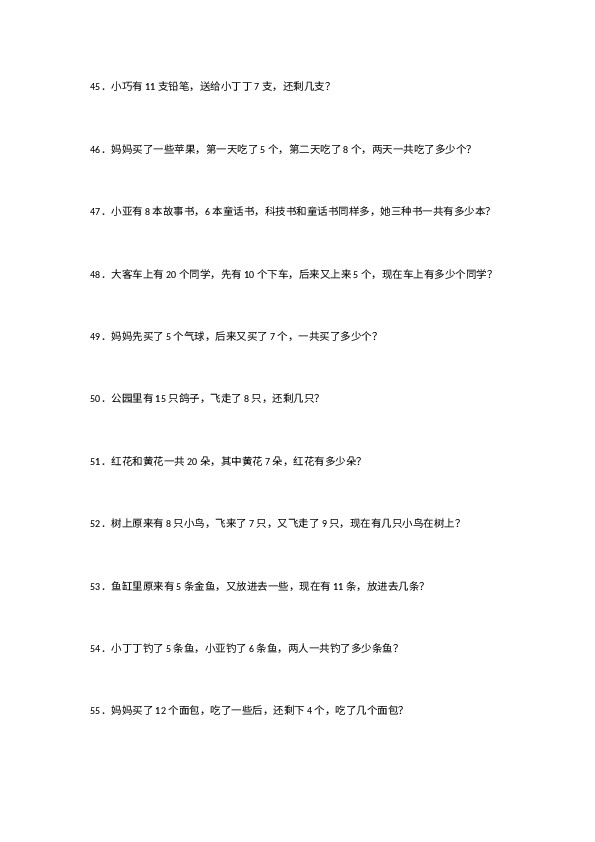 上一篇:小学数学一年级上册-数学应用题专项
