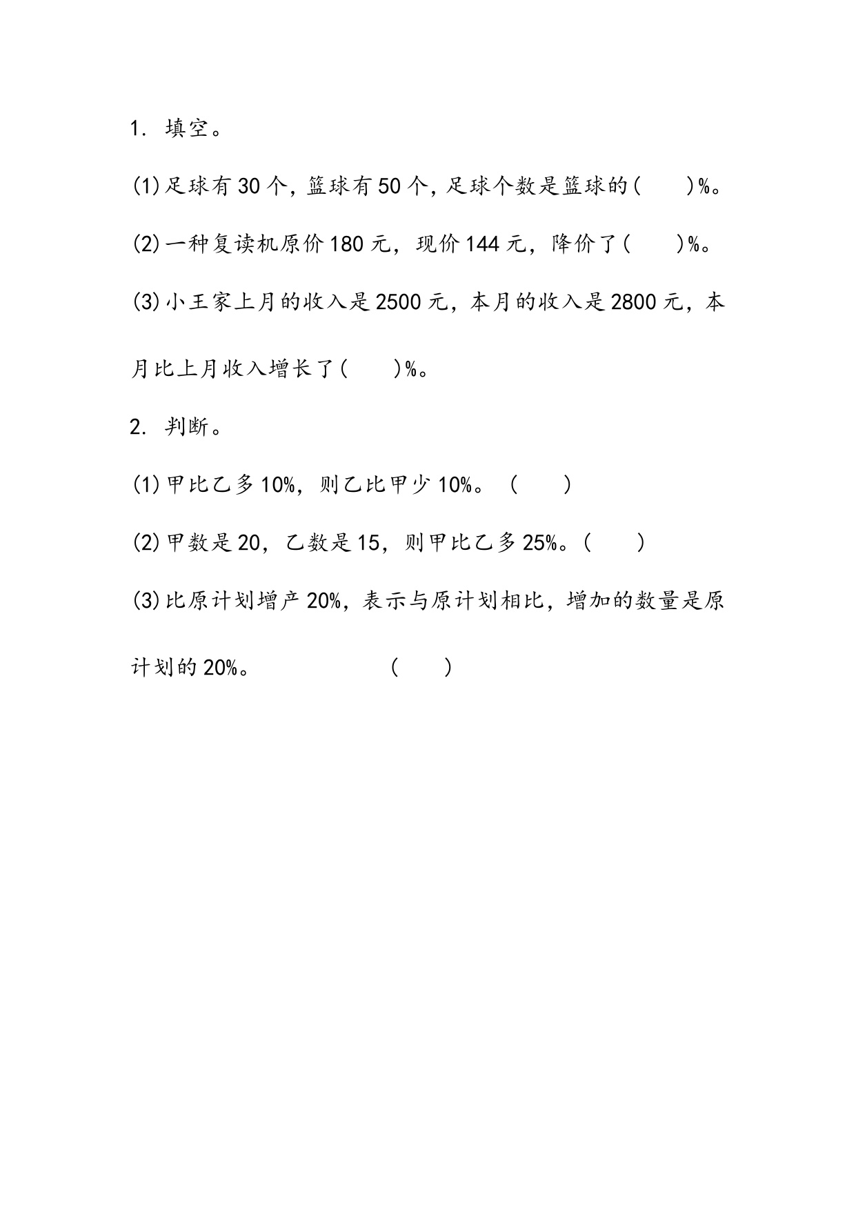 六上数学课时练-5-1 求一个数比另一个数多(少)百分之几